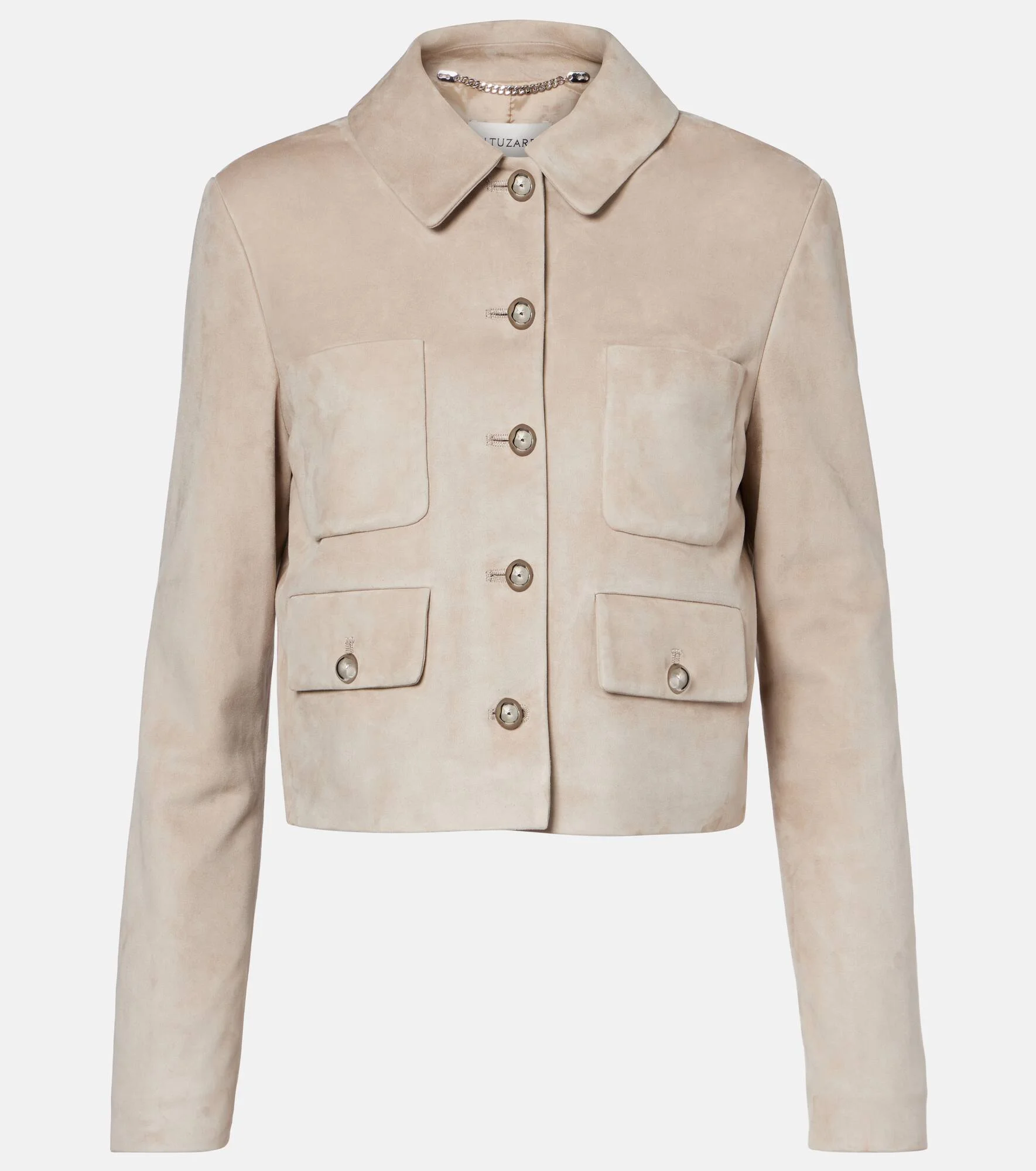 Informed by founder Joseph Altuzarra’s multicultural upbringing, each Altuzarra piece speaks to the power of considered elegance. Crafted from supple suede, the Astley jacket features front pockets and a buttoned front closure. Product Details - Material: 100% goat leather (suede) - Care instructions: dry clean - Made in Turkey - Designer color name: Moonlight - Item color: beige - Lining: 67% viscose, 33% polyester - Closure: buttoned front - Pockets: patch pockets, buttoned pockets - Item number: P01120320