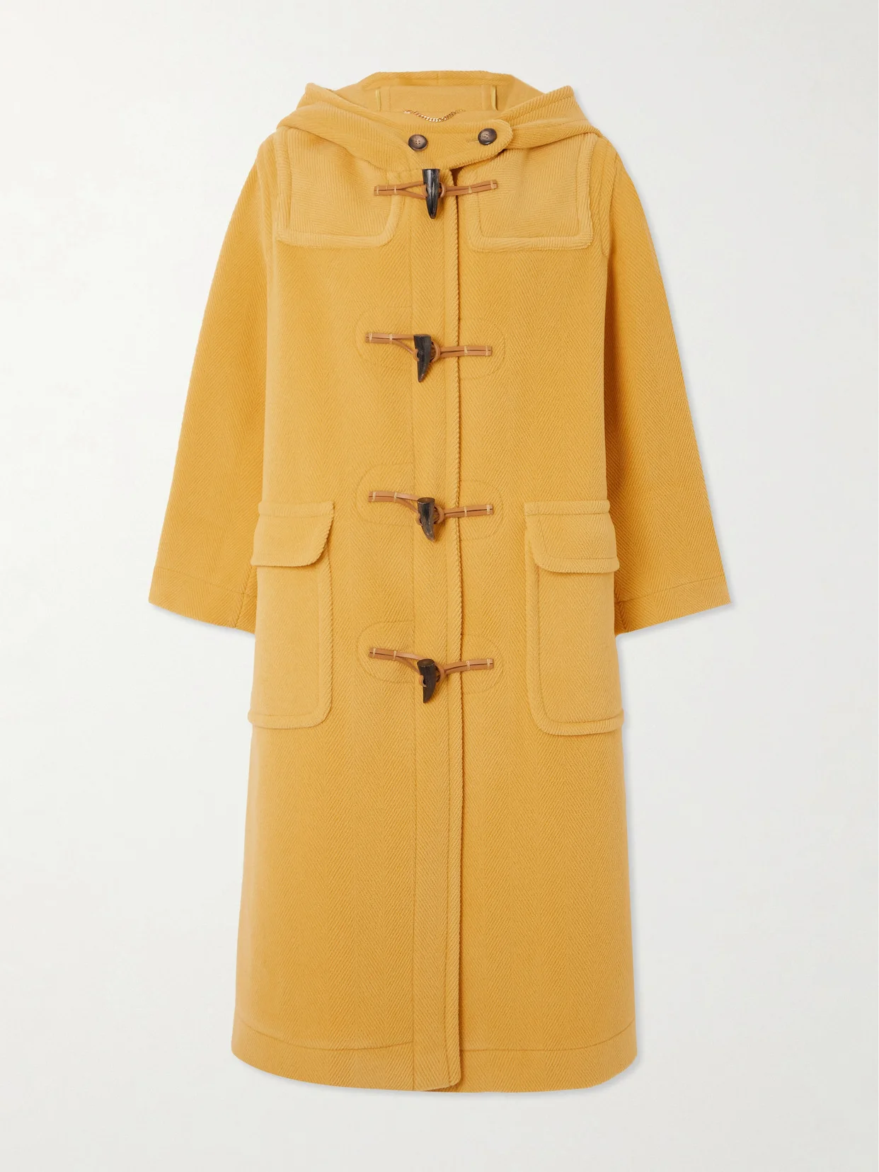Marking the eponymous brand's 15th anniversary, this coat debuted on the runway at Altuzarra's intimate salon-style Fall '24 presentation. It's tailored from herringbone wool in a sunny yellow color you can think of as sartorial serotonin and fastens with classic duffel-style buttons. Mimic the show styling by layering yours over frilly blouses.