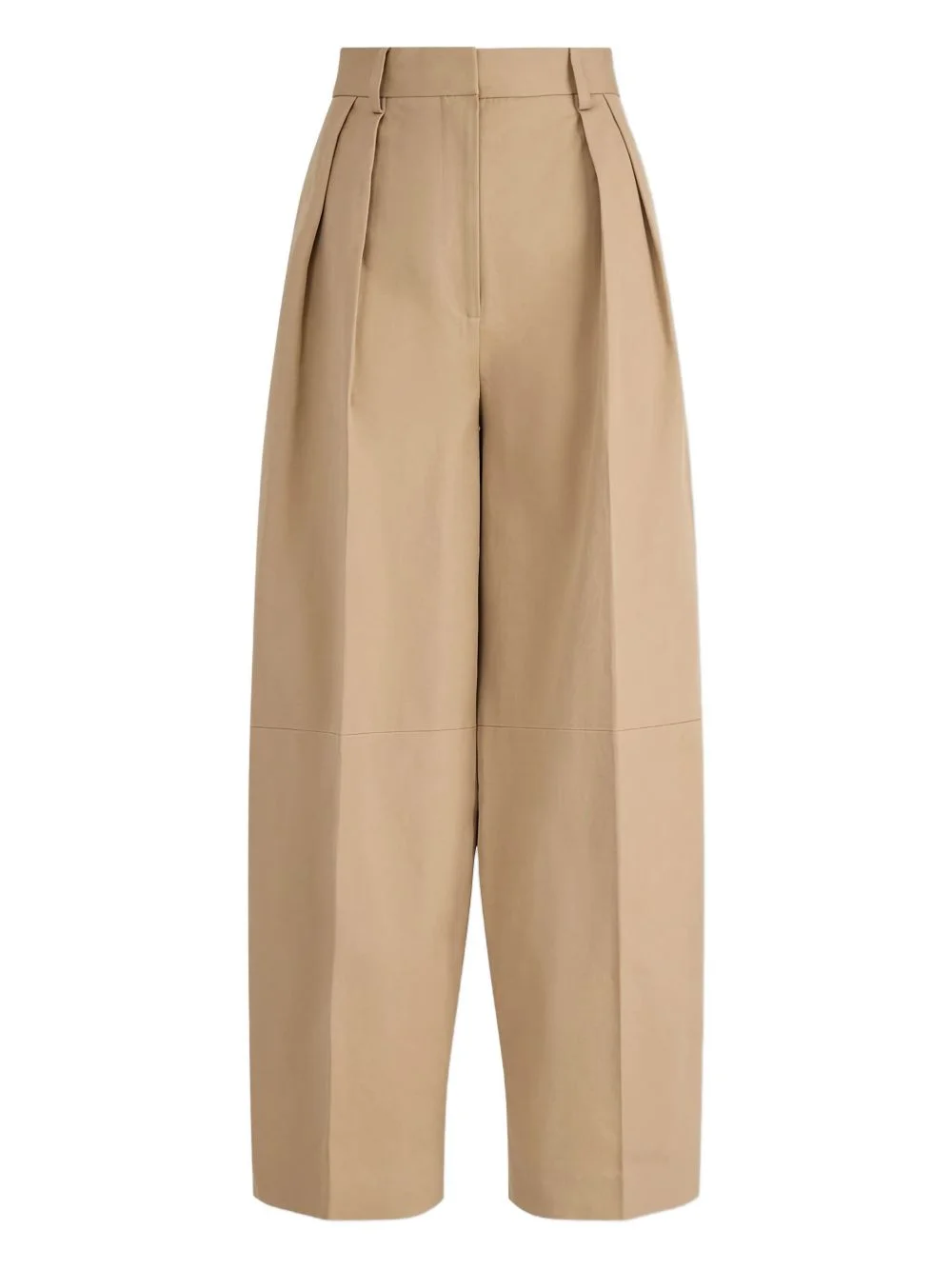 pleated gabardine trousers Highlights - Beige - Pleated design - Zip fly - Hidden button fastening - Side pockets - Welt pockets Made in Italy Composition Wool 70%, Silk 30% Washing instructions Read Manufacturer Guidelines