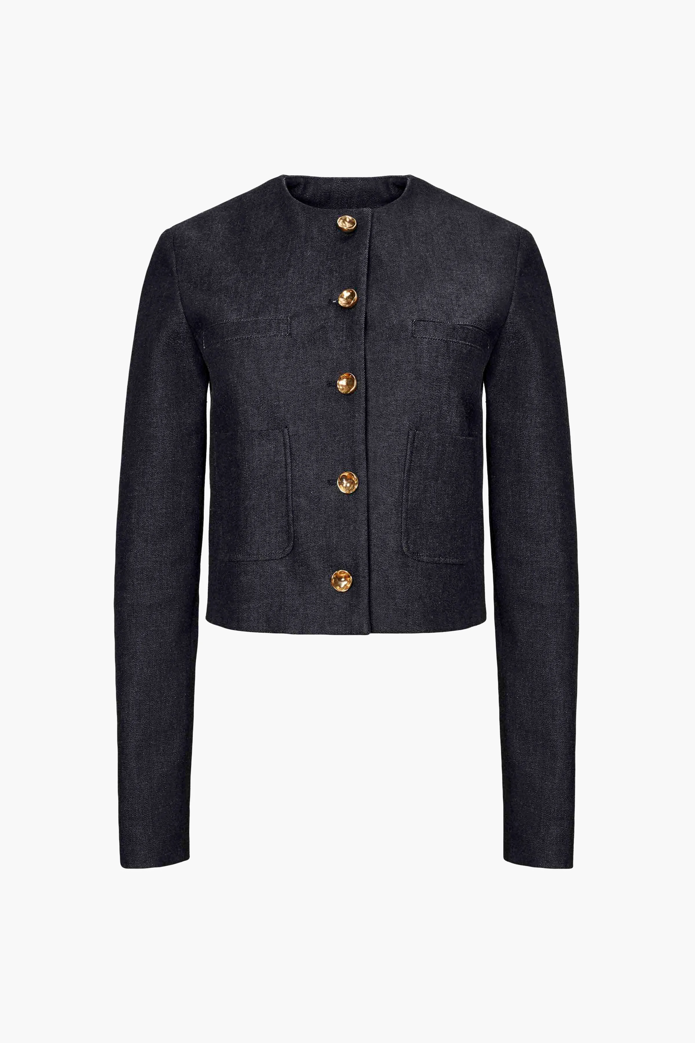 The Bernadette jacket is Italian-made from cotton denim to a neat, slim-fitting silhouette. It's detailed with patch pockets and decorative buttons down the front and at the cuffs.   Details Long sleeves Button fastening Round neck Patch pockets Molten buttons 98%Cotton, 2%Polyurethane Made in Italy