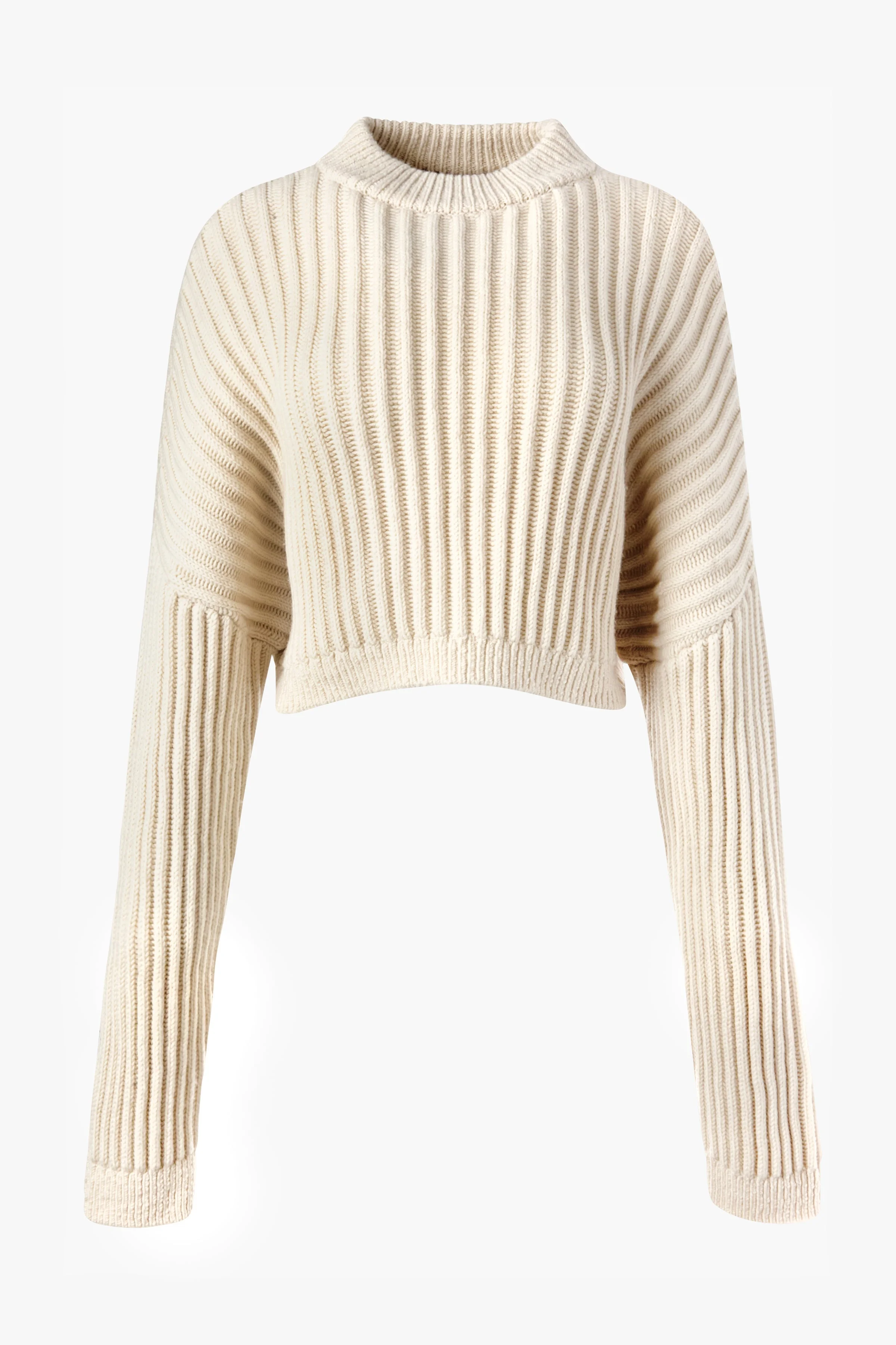 The Bitsy sweater is expertly knitted from merino wool that's exceptionally soft and cozy. It's thickly ribbed in a versatile ivory shade which will go with so much in your closet. Details 100% Extrafine Merino Wool. Imported.