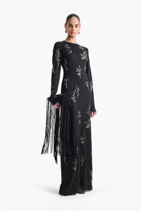 The Bozka Dress is shaped from a luxurious bend of lama and mulberry silk. The understated, maxi silhouette is embellished with silver beads shaped to depict branches and leaves. We recommend sizing down for this product. Details 70% Baby Lama Soft 30% Mulberry Silk