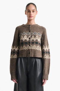 The Cammie sweater is designed with a traditional Fair Isle pattern. The knitted design features ribbed trims and is finished with button front fastenings. Style it with wool trousers for the transition between seasons. Details 66% Wool, 17% Viscose, 17% Polyamide. Imported.