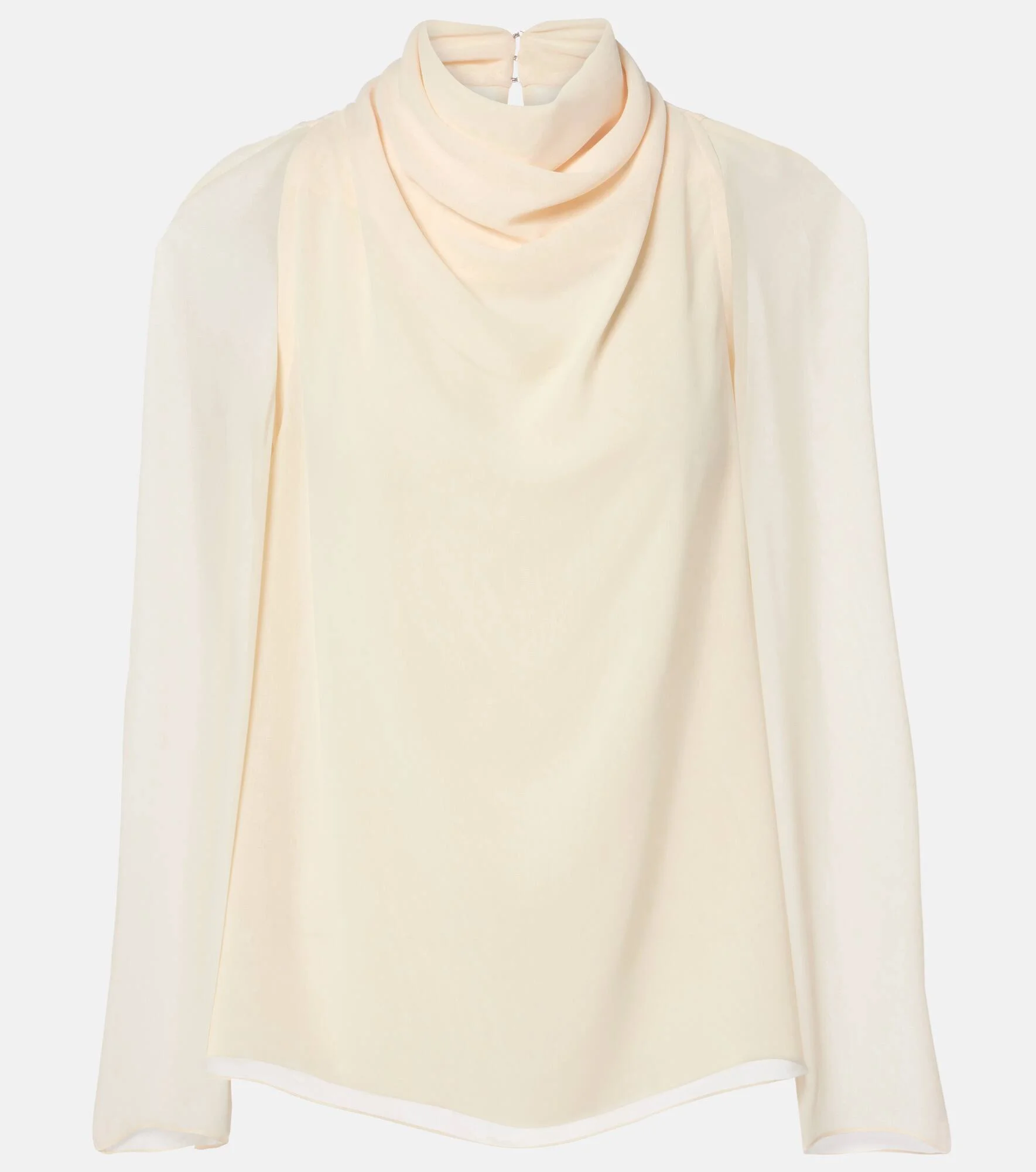 Informed by founder Joseph Altuzarra’s multicultural upbringing, each Altuzarra piece speaks to the power of considered elegance. A timeless and elegant design, the Cara top features a draped, high neckline and airy bell sleeves. Product Details - Material: 100% polyester - Care instructions: dry clean - Made in Italy - Color: white - Designer color name: Ivory - Closure: hook-fastening back - Item number: P01144211 Size & Fit - True to size - Designed for a loose fit - Non-stretchy fabric - Falls below the hip - The model seen in the picture is 178cm-5'10" and wearing a size FR 36