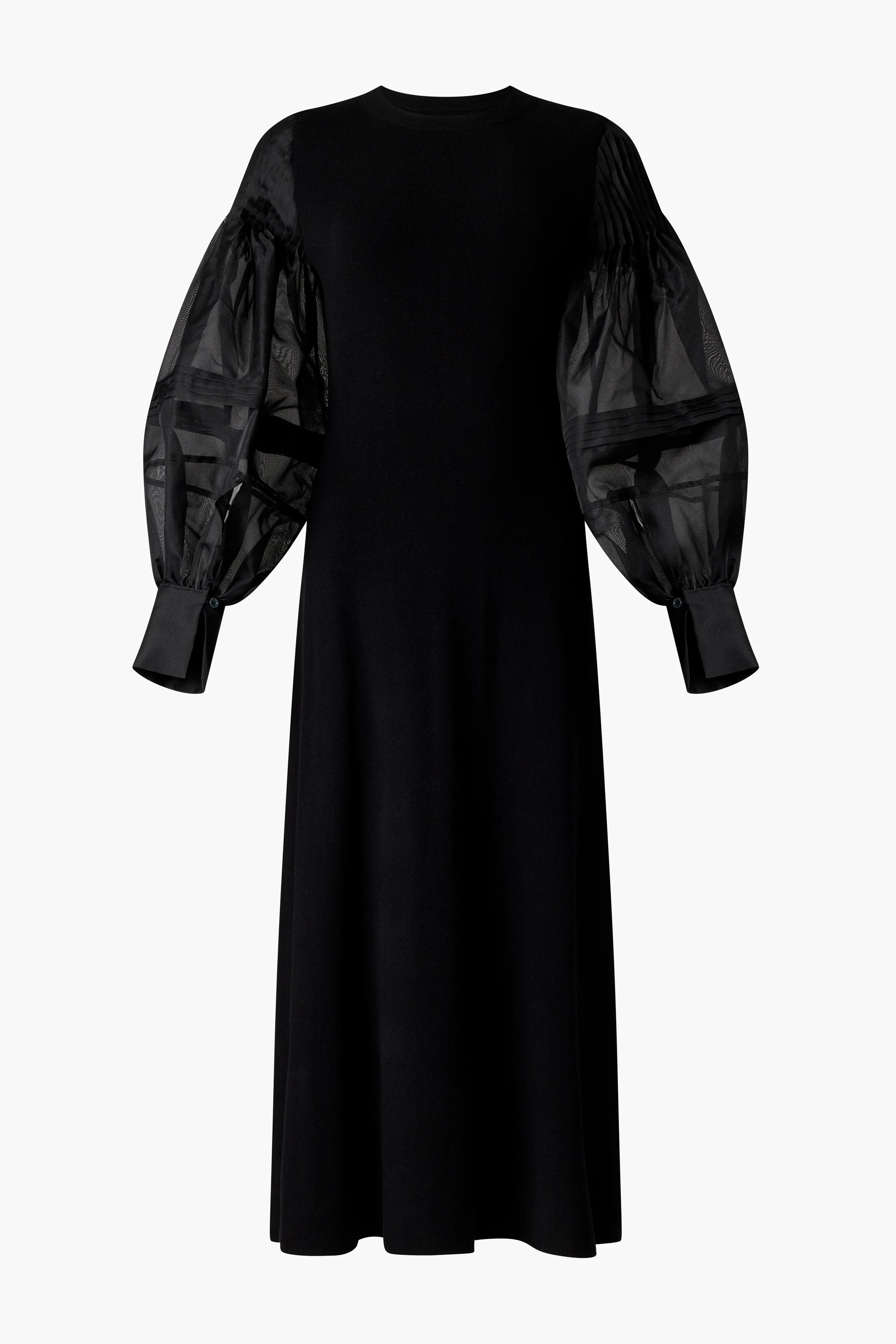 The Carino Dress is a modern wardrobe staple. Shaped from silk to a midi-length silhouette, it features voluminous, transparent sleeves with button fastening cuffs. Classic pumps and gold jewelry will complete the look. Details 100% Silk. Made in Italy