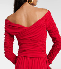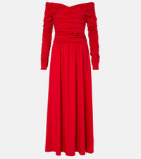 Product Details - Material: 92% polyester, 8% elastane - Care instructions: dry clean - Made in Portugal - Designer color name: Grenadine - Closure: zipped side - Item number: P00949989 Size & Fit - True to size - Off-the-shoulder - Cinched waist - Stretchy fabric - The model seen in the picture is 178cm-5'10" and wearing a size FR 36