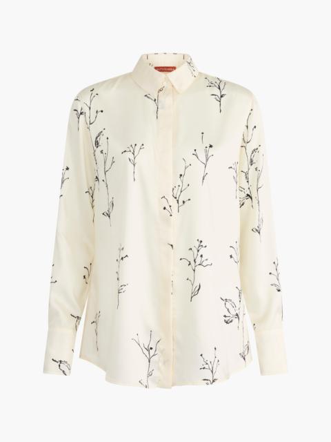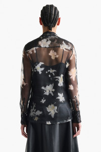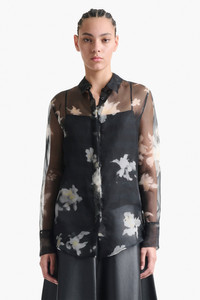 The Chika Top is a signature style in sheer chiffon. Capturing an easy elegance, the relaxed style features a small point collar, a concealed button front closure and comes complete with a camisole top. Note the inky botanical print which evokes dried flowers, lovingly preserved or hastily sketched in a notebook Details 100% Silk. Made in Portugal