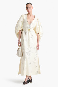 The Corrie dress is the perfect transitional piece. Shaped from cotton to a maxi silhouette with voluminous sleeves, it's designed with a botanical print and finished with a waist-cinching belt. Details 100% Cotton. Made in Italy