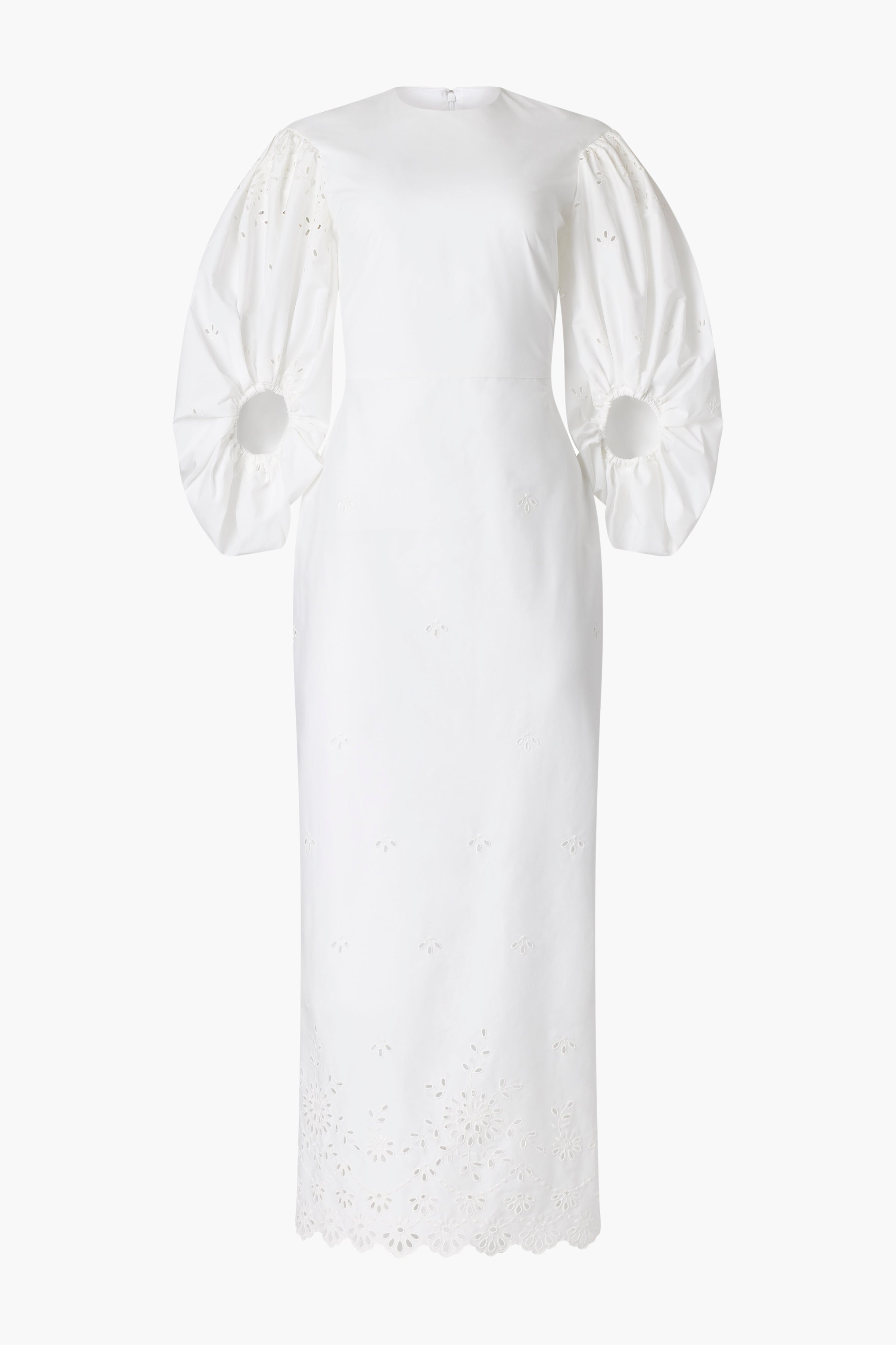 The Danielle midi dress is designed with dramatic transparent sleeves that billow elegantly. Made in Italy from silk-cady in an optic white shade, it's cut for a figure-hugging silhouette and has a round neckline. Details '- 70% Cotton, 30% Polyester Made in Italy