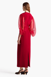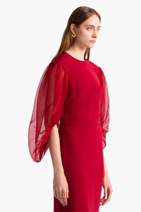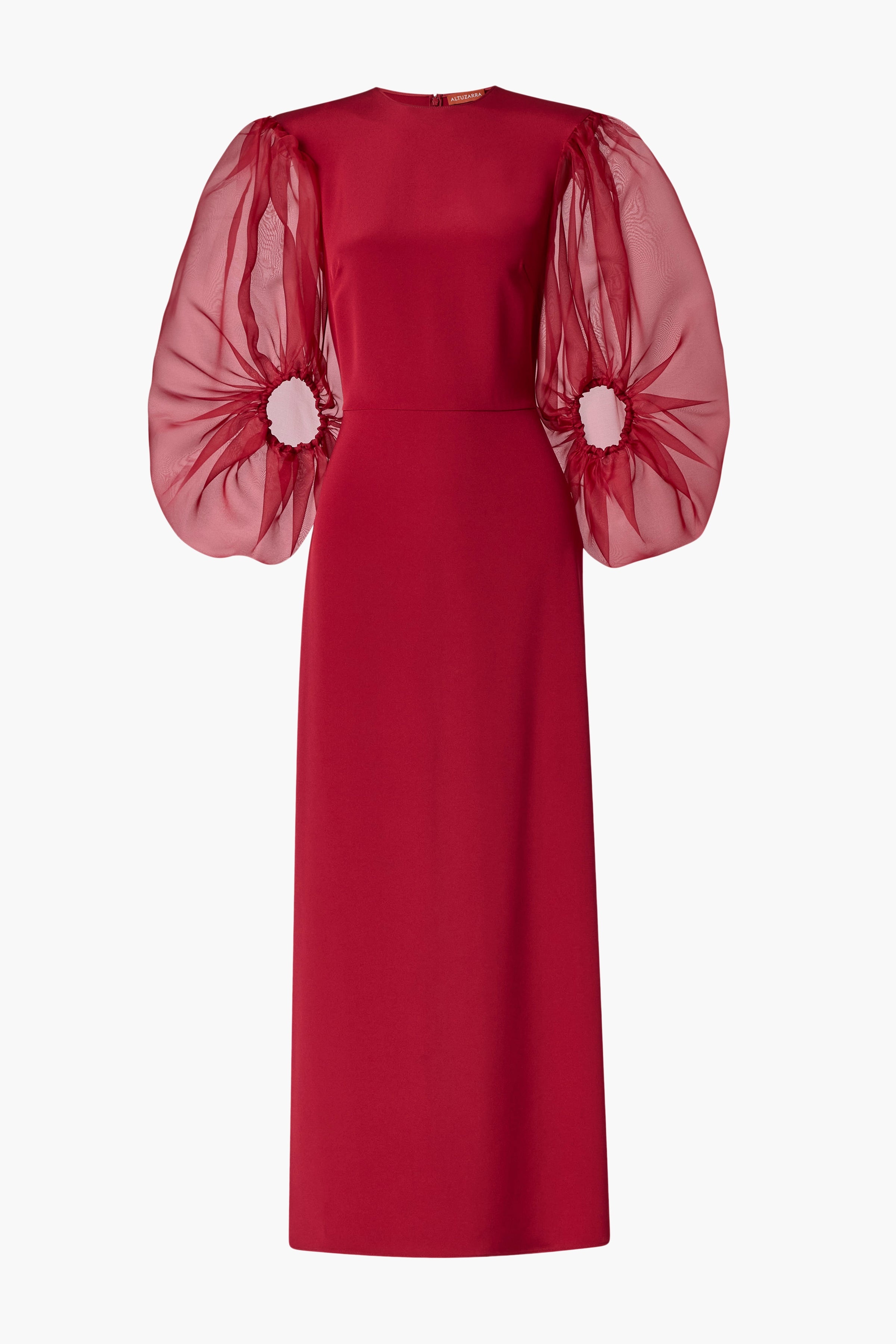 The Danielle midi dress is designed with dramatic transparent sleeves that billow elegantly. Made in Italy from silk-cady in a deep red shade, it's cut for a figure-hugging silhouette and has a round neckline. Details 100% Silk Made in Italy