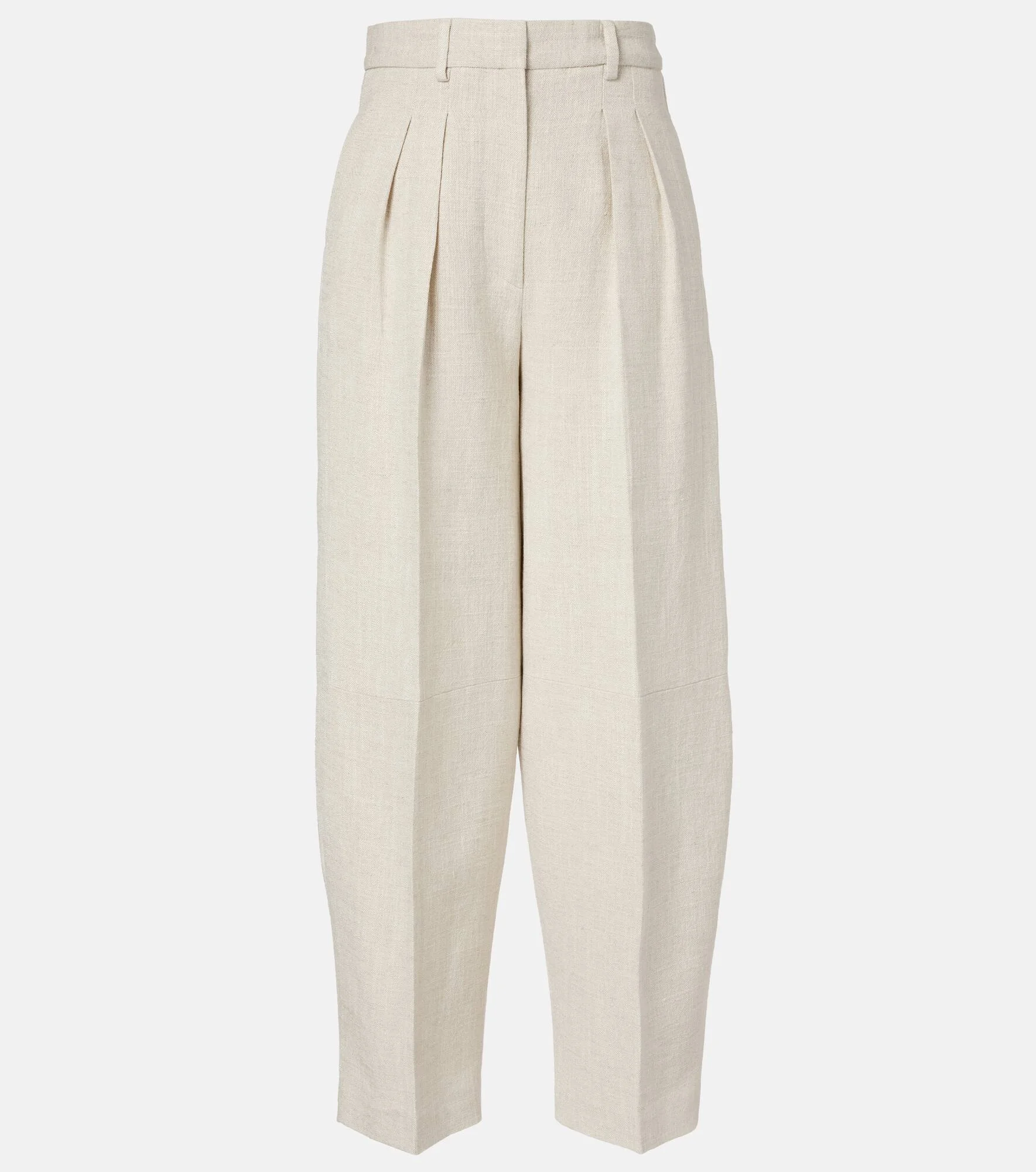 Informed by founder Joseph Altuzarra’s multicultural upbringing, each Altuzarra piece speaks to the power of considered elegance. The Dash pants are crafted in Italy into a barrel-leg silhouette with a slightly cropped fit. Product Details - Material: 68% European Flax™, 32% viscose - Care instructions: dry clean - Made in Italy - Color: beige - Designer color name: Mortar Melange - Lining: 67% viscose, 33% polyester - Belt loops - Closure: zipper fly, button and hook fastenings - Pockets: side slit pockets, back pockets - Item number: P01144262 Size & Fit - Fits large to size - we recommend trying one size smaller - Non-stretchy fabric - Tapered leg - The model seen in the picture is 178cm-5'10" and wearing a size FR 34