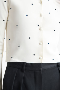 The Dorrie Sweater is subtly embellished with shimmering crystals that instantly elevate the classic button-up silhouette. Made from jersey with a round neck, use it to bring sparkle to your day to night looks. Details 94% Rayon Viscose, 6% Elite Fiber Polyester