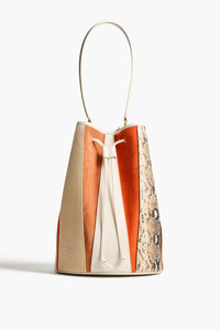 The Large Drum bag is shaped with harlequin-inspired paneling made from leather, suede and faux snakeskin. It features a drawstring top closure and is hallmarked with an Altuzarra stamped logo. Details 100% Calf Leather. Made in Spain