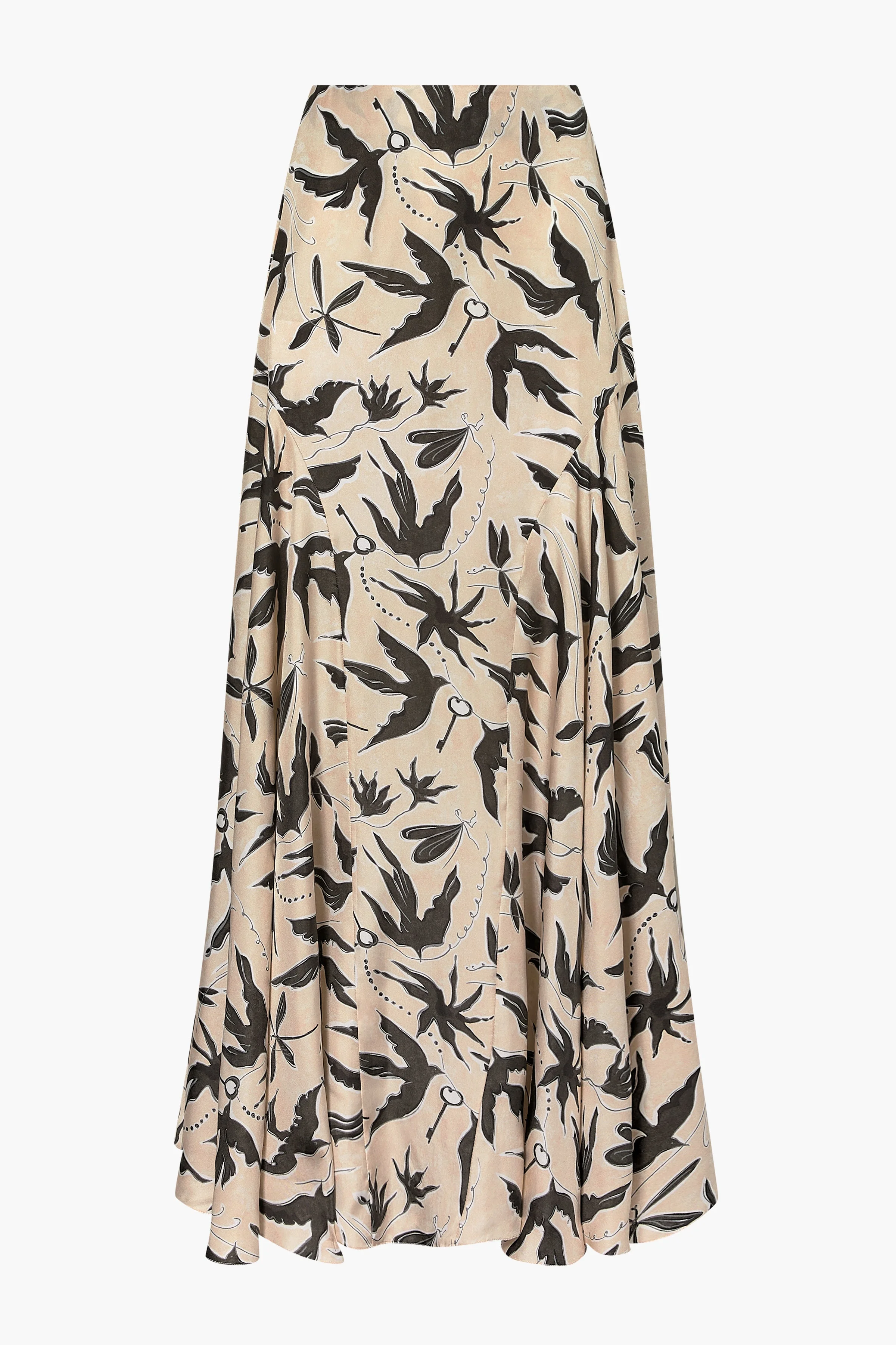 The Elton Skirt is designed with a fitted waist and a fluid, flared silhouette that falls to a long hem. It drapes softly through the body and opens into a voluminous shape. Details 100% Silk Made in Italy