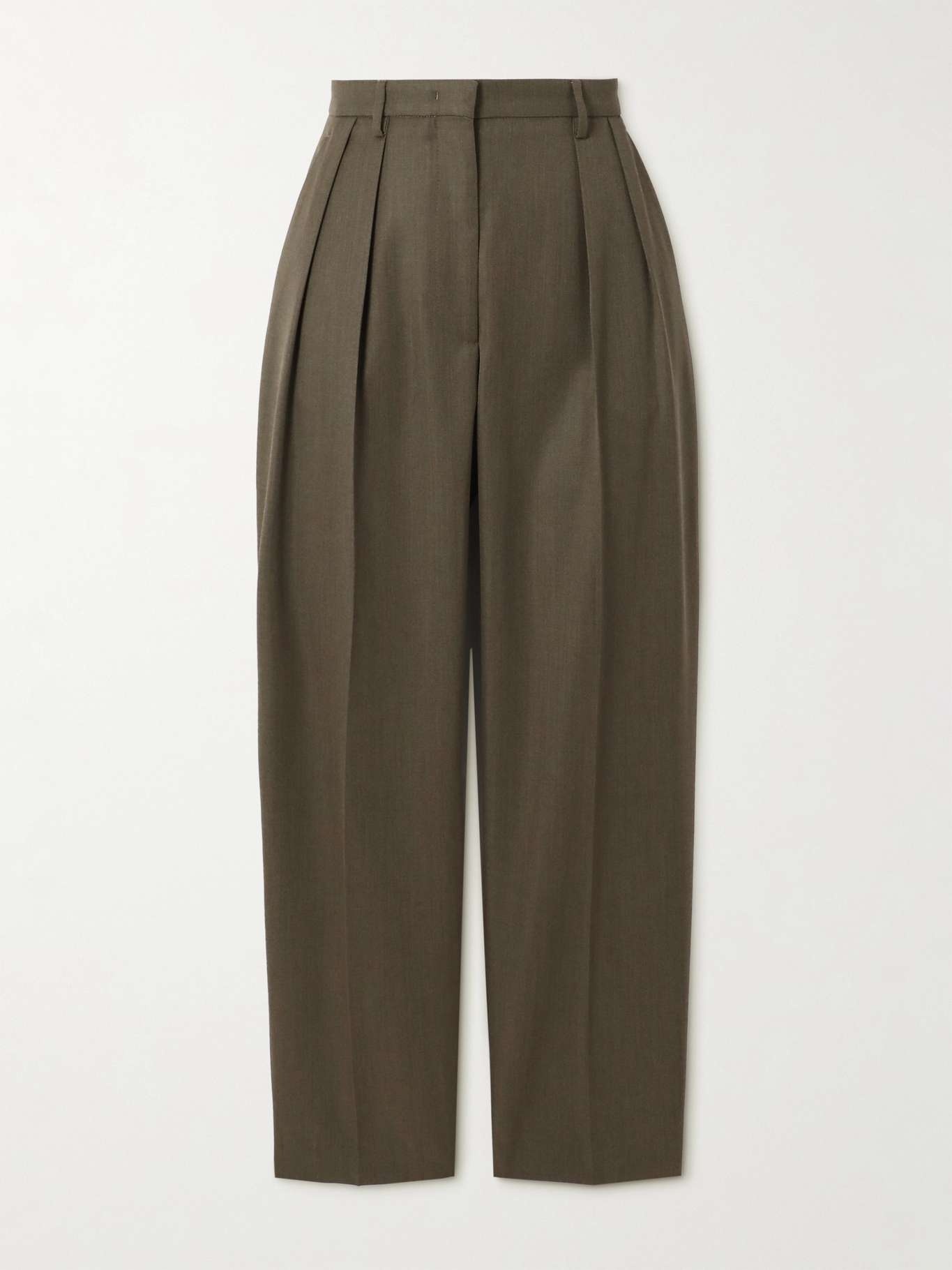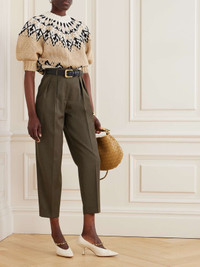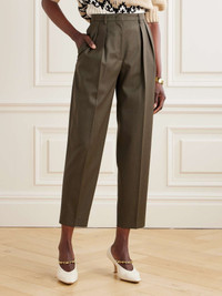 Altuzarra's 'Emmett' pants look impeccably chic no matter what you style them with - think a blazer for the office, or a simple white tee and ballet flats for dinner after. They're made from army-green wool and have a tapered profile and voluminous pleats that trace from the high waist through the hips. Size & Fit - Fits true to size, take your normal size - High-rise, intended for a wide-leg fit, tapered at the hem - Cropped length - Mid-weight, non-stretchy fabric - Model is 177cm/ 5'10" and is wearing a FR 34 Model measurements: - Bust: 81cm/ 32" - Waist: 62cm/ 24.5" - Hip: 89cm/ 35" Details & Care - Army-green wool - Concealed hook and zip fastening at front - 100% wool - Dry clean