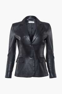 The Fenice Leather Jacket is part of the Core Collection. Crafted to a signature Altuzarra silhouette with structured shoulders and a neatly tailored waist. It has high notched lapels, a single chest pocket and flap front pockets. Details Structured shoulders and a tailored waist High notched lapels for added elegance Single chest pocket and flap front pockets for style and functionality 100% Lamb leather - premium quality leather for durability, comfort and a luxurious feel Versatile and timeless design for any occasion Made in Turkey Model is 5'10" and is wearing a size 36