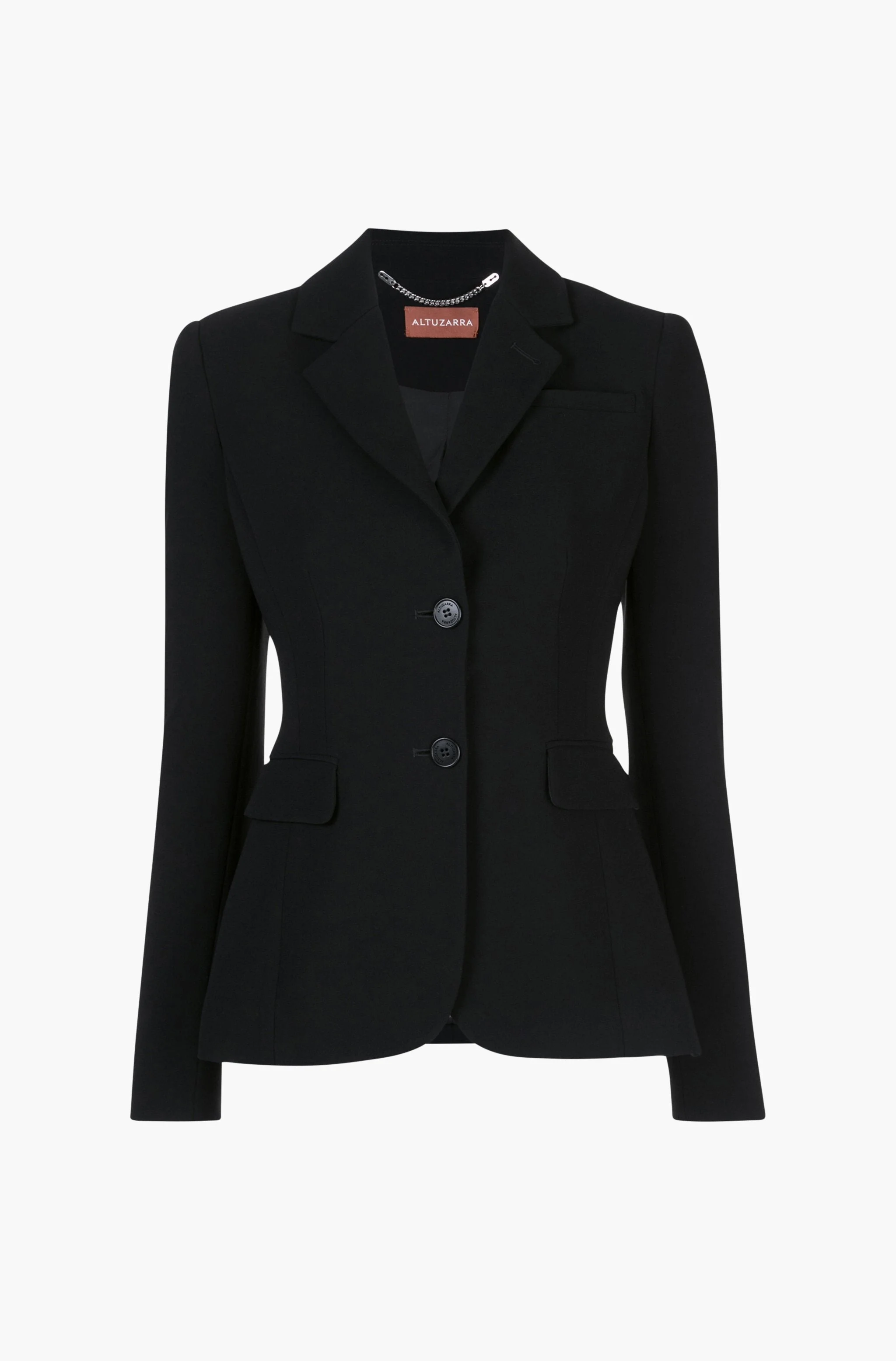 The Fenice Jacket is a classic suiting style, cut from signature crease-resistant fabric to a slim silhouette with structured shoulders and a neatly tailored waist. It has high notched lapels, a single jet chest pocket and flap front pockets. Details Notched lapels Single-breasted button front closure Long sleeves Jet chest pocket Flap front pockets Double back vent 69% Triacetate, 31% Polyester Made in Italy Model is 5'11" and is wearing size 36