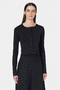 The Ferris cardigan is the perfect addition to your layering collection. Knitted from soft jersey to a close-fitting silhouette, it's punctuated with tiny metal studs. Style it with the matching skirt for a statement pairing. Details 94% Viscose, 6% Polyester