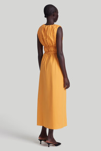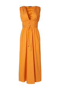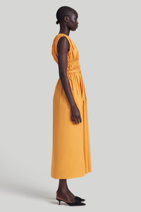 The ‘Fiona’ dress is a lesson in modern femininity, crafted in Italy to a maxi silhouette with a low V-neck highlighted by ruching and folds. It’s finished with a waist cinching tie. Details - Midi length - V-neck - Sleeveless - Ruching details - Waist cinching tie - 97% Cotton, 3% Elastane - Made in Italy - Model is 5'10" and is wearing a size XS