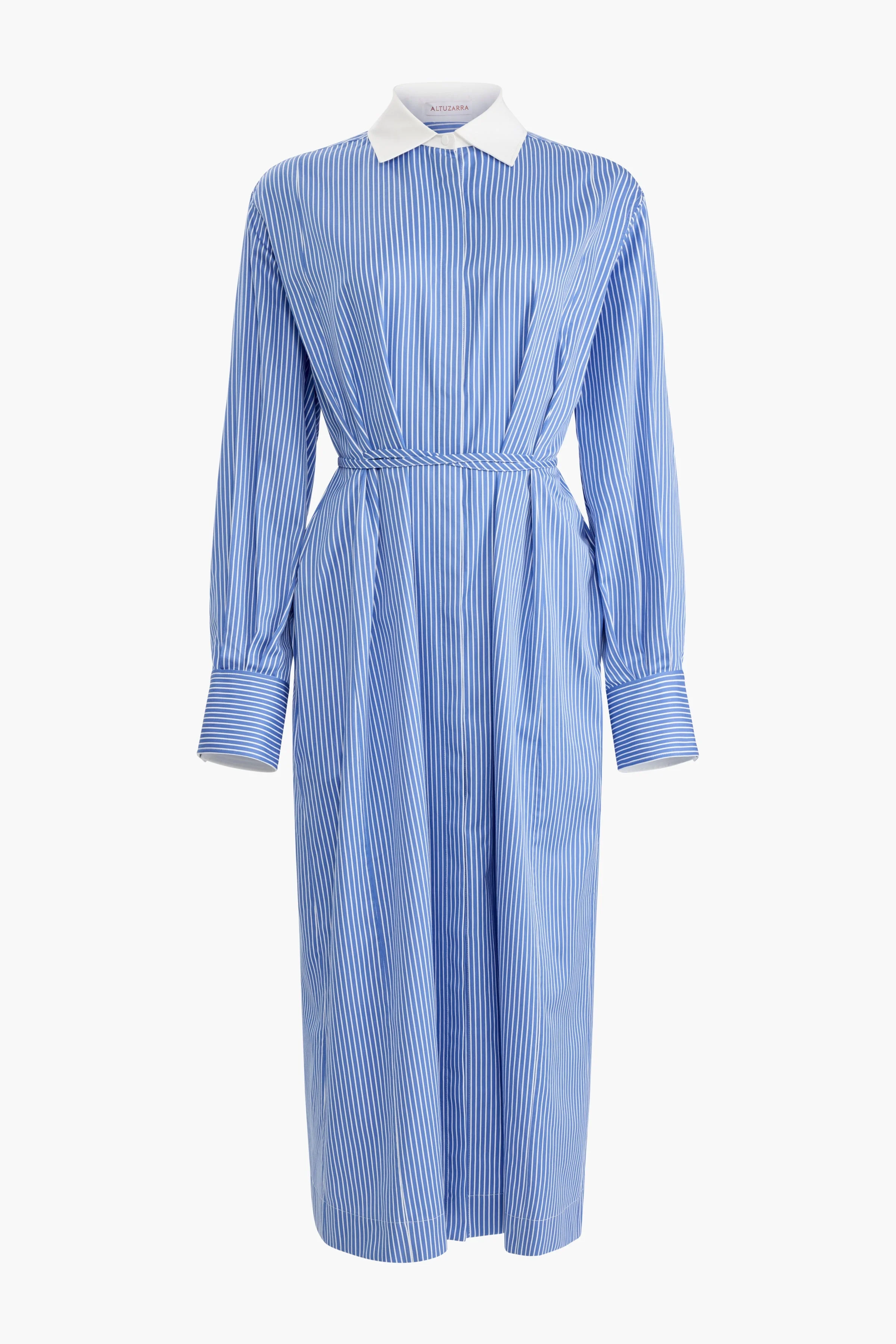 The Floyd dress is designed with a shirt like silhouette. It features a contrasting point collar and can be cinched at the waist with the matching wrap tie fastening. Details 100% Cotton
