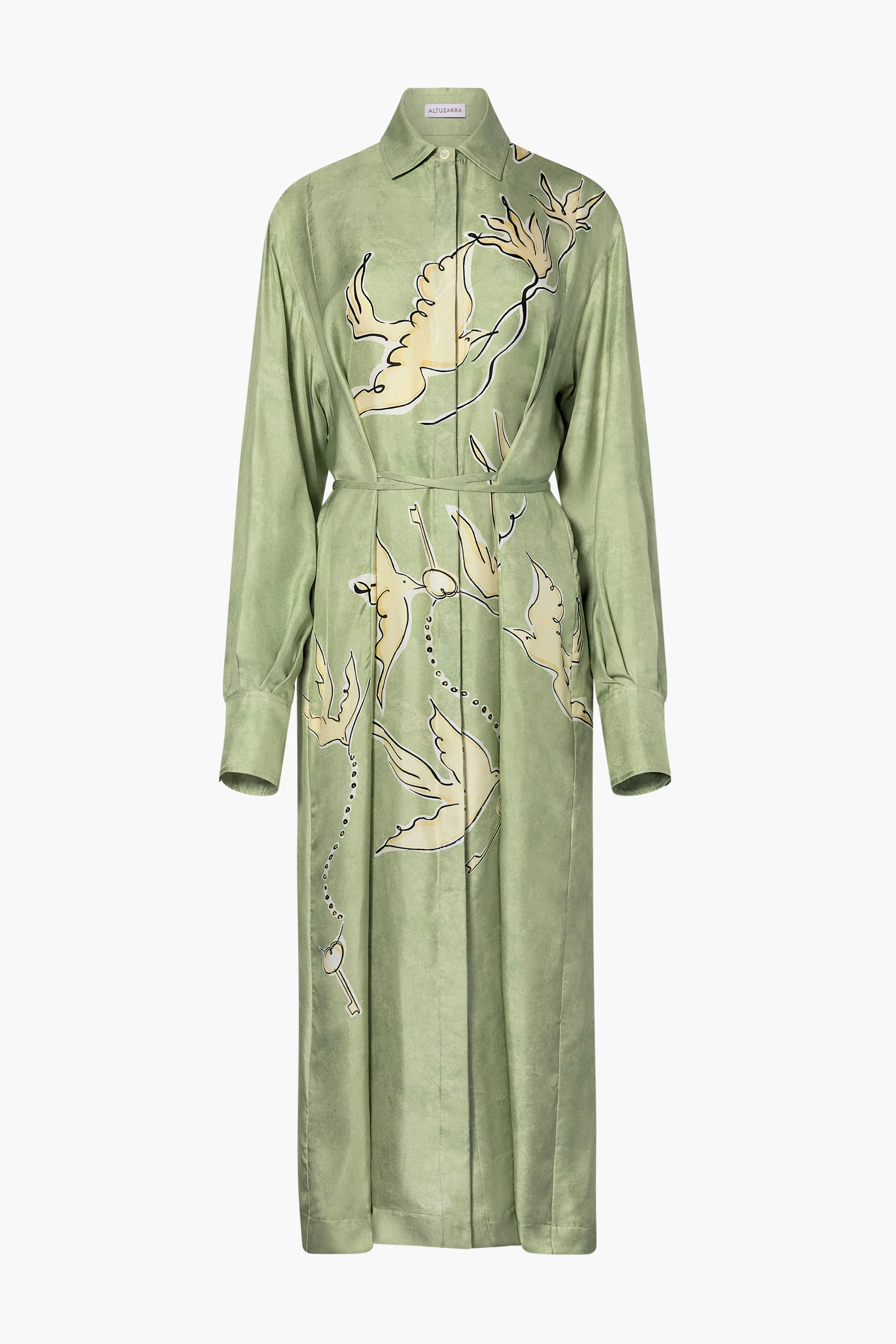 The Floyd dress is designed with a shirt like silhouette. It features a contrasting point collar and can be cinched at the waist with the matching wrap tie fastening. Details '- 100% Silk Made in Italy