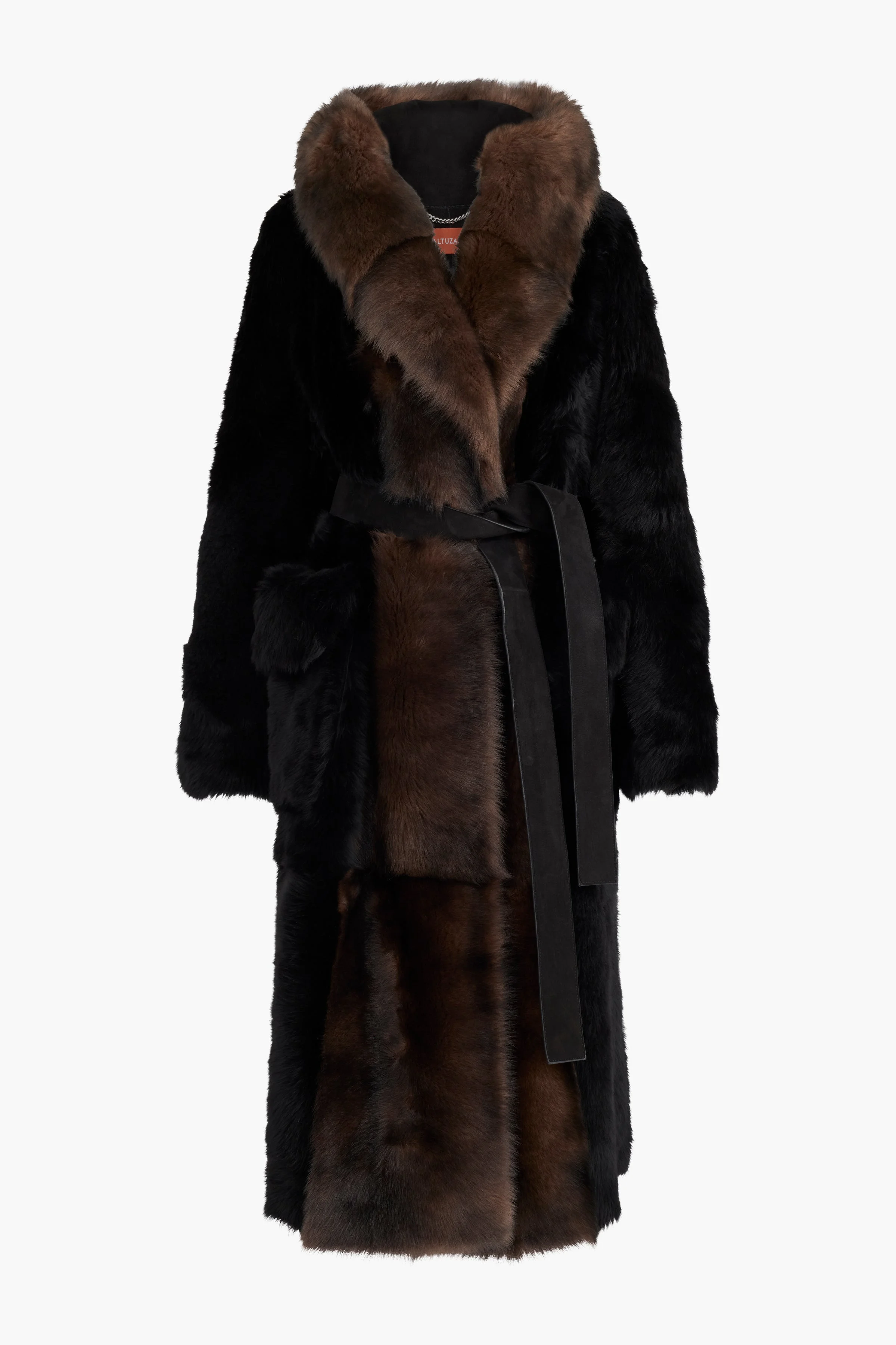 The Geoff Coat was first seen on the Fall runway with pointed toe pumps. The vintage-inspired design is made from lambskin with a shawl collar and a waist cinching leather belt tie. Fill the oversized pockets with your essentials. Details 100% Lamb Skin. Made in Turkey