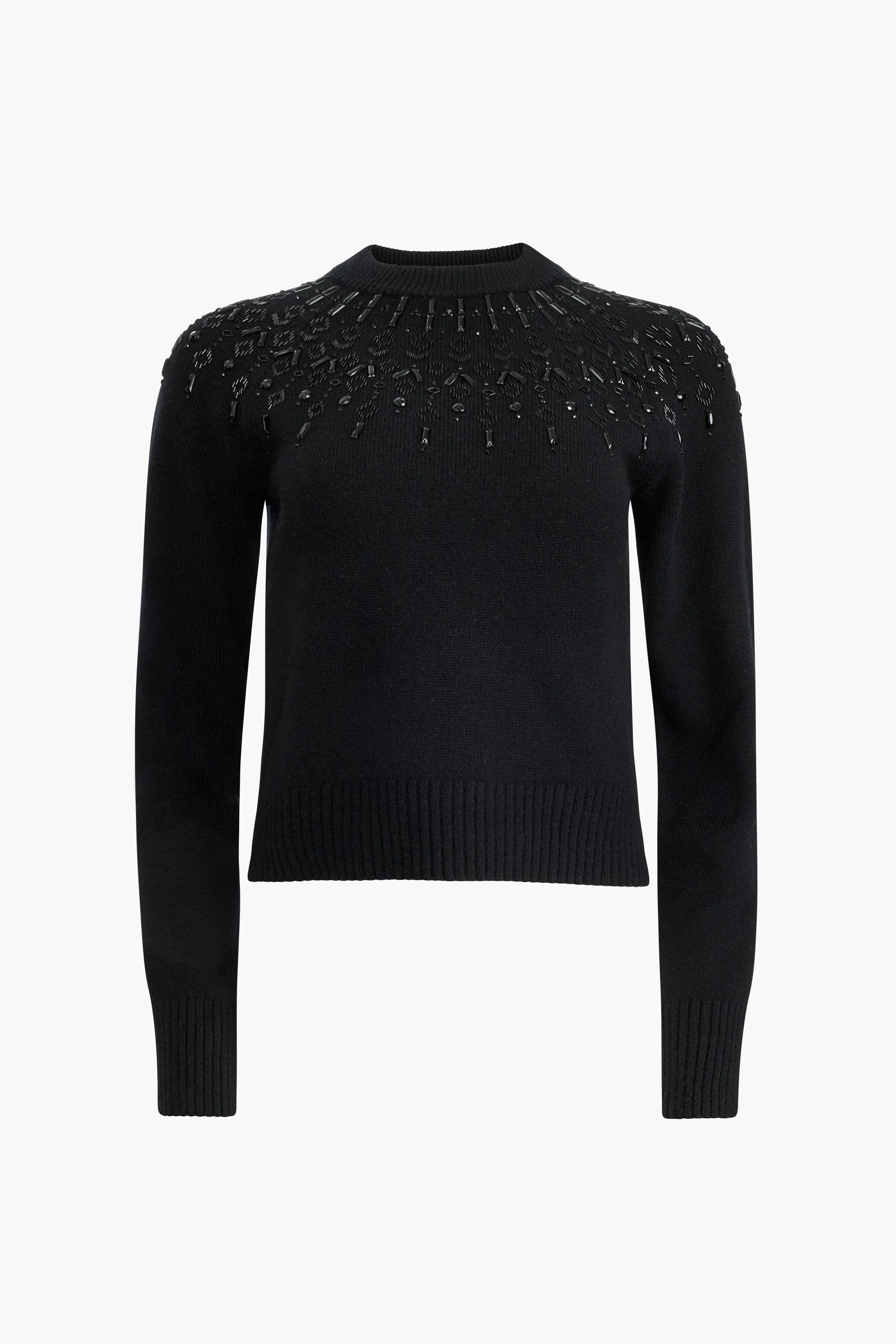 The Harold sweater is embellished with glistening crystals around the neckline. It's made from soft virgin wool with ribbed trims. Wear yours with everything from jeans to mini skirts. Details '- 100% Virgin Wool