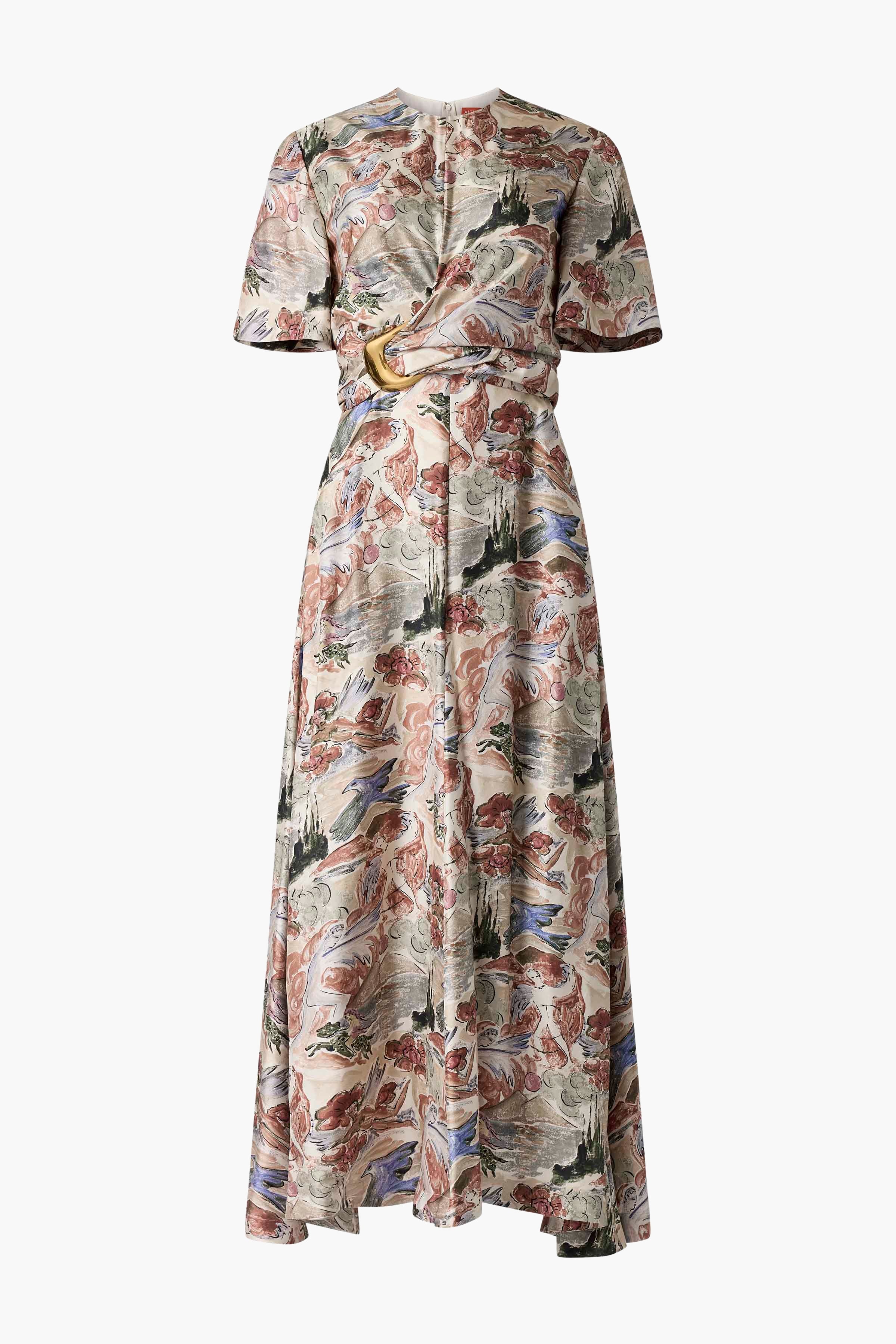 The Honey dress is cut in Italy from a lightweight silk featuring a mythical fawn print which was hand-drawn. Note the belt which is designed to wrap around the waist and is finished with an oversized buckle to cinch your shape. Details '- 100% Silk Made in Italy