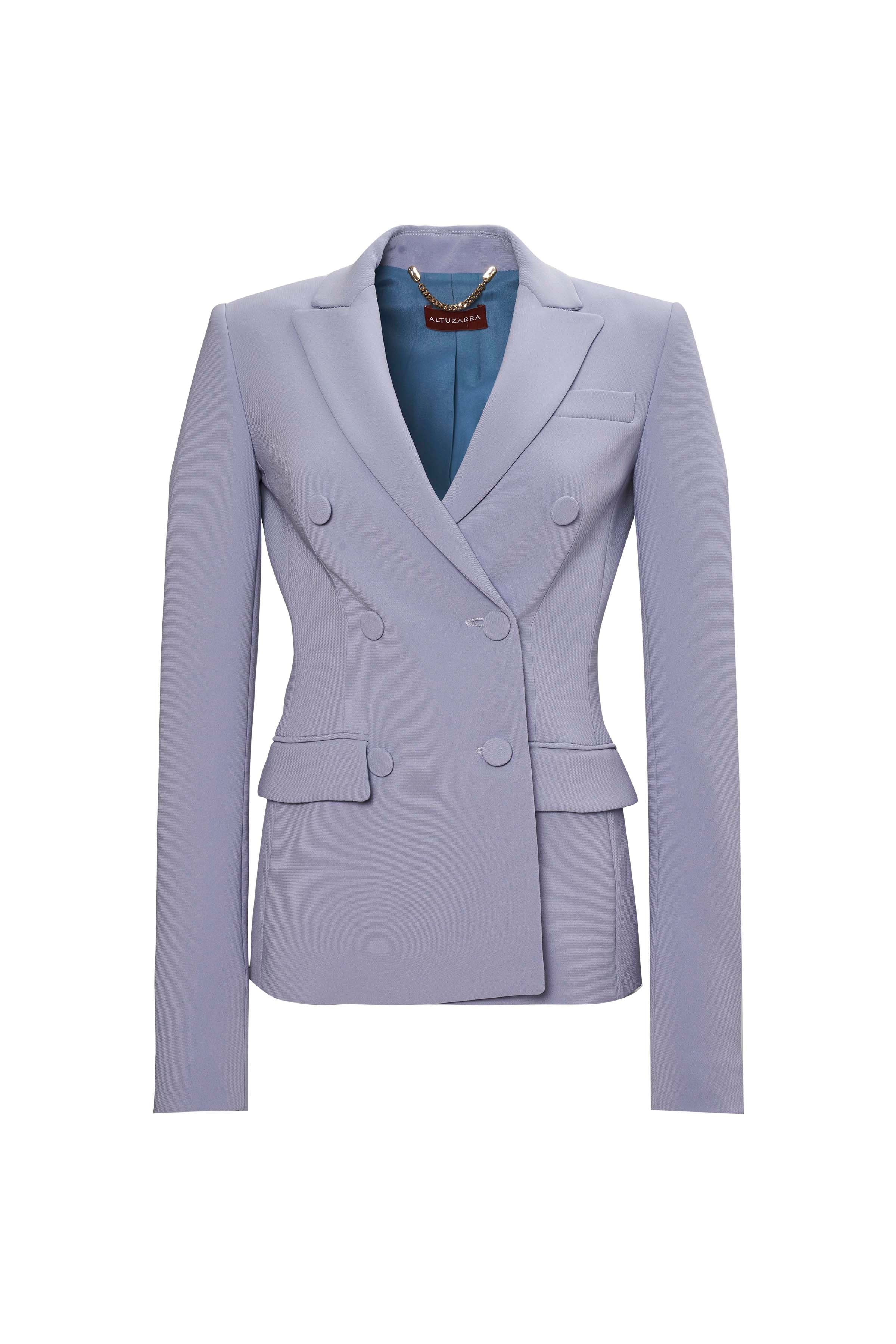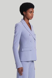 The 'Indiana' Jacket is a signature style, tailored from crease-resistant fabric to a timeless double-breasted design with notched lapels. It falls to an elegant length just below the hip and it has two flap front pockets. Details - Notch lapels - Long sleeves with button cuffs - Welt chest pocket, flap front pockets - Fully lined - Double-breasted button fastening - Slim fit - 69% Triacetate, 31% Polyester - Made in Italy - Model is 5'10" and is wearing a size 36