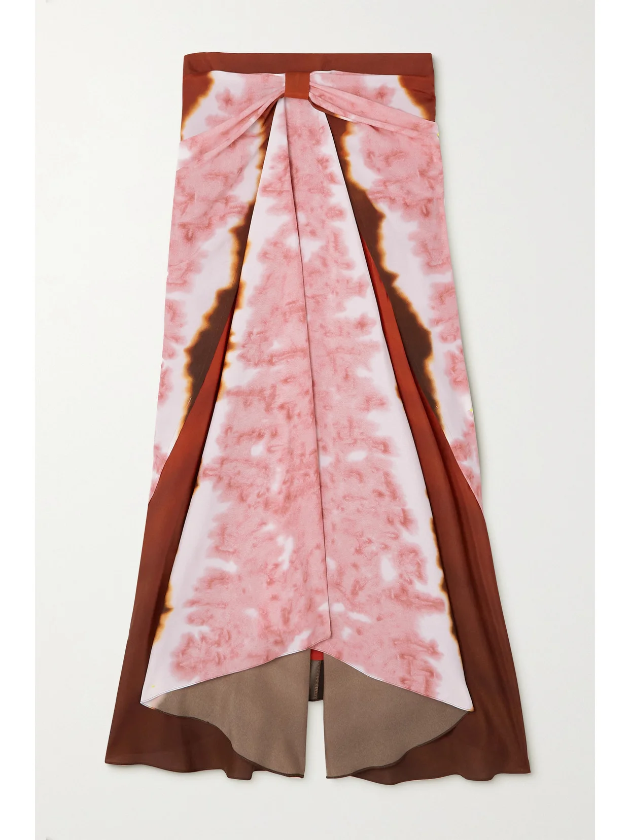 Kalliope Draped Tie-dyed Satin Midi Skirt