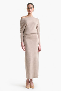 The Kasos dress is spun from pure cashmere with an oversized, off-the-shoulder top and a minimal, floor-grazing skirt. Conveying the sensuality and ease that Altuzarra is known for, its finished with long, slim sleeves and a side slit hem. Details 100% Cashmere. Imported.