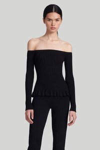 The ‘Kent’ top is a compact-knit style cut to an off-the-shoulder silhouette. Fitted at the waist and flaring out to a subtle peplum hem, it’s finished with long, slim sleeves. Details - Off shoulder - Long sleeves - Peplum hem - Slim fit - 80% Rayon Viscose, 20% Polyamide - Model is 5'10" and is wearing a size XS
