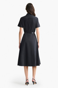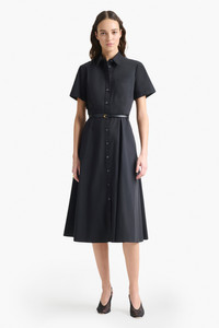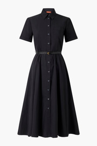 The Kiera Dress features an airy A-line silhouette. Designed with a small point collar and short sleeves, is detailed with a slim leather waist belt. Details '- 70% Cotton, 30% Polyester Made in Italy
