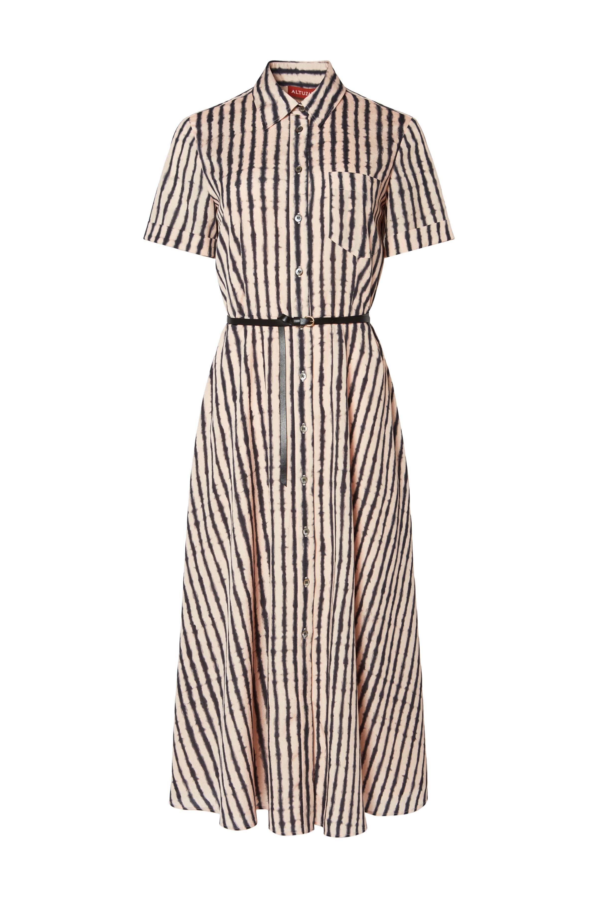 The ‘Kiera’ dress features an airy A-line silhouette. Designed with a small point collar and short sleeves, is detailed with a slim leather waist belt. Details - Point collar - Short sleeves - Button detailing - Slim leather waist belt with buckle fastening - 100% Polyester - Model is 5'10" and is wearing a size 36