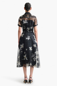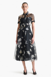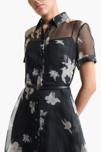 The Kiera dress features an airy A-line silhouette. Designed with a small point collar and short sleeves, it's detailed with a slim leather waist belt. Details 100% Silk, Made in Italy