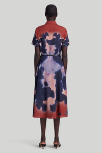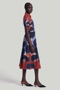 The ‘Kiera’ dress creates an airy A-line silhouette. Designed with a small point collar and short sleeves, it features a slim leather waist belt. Details - Point collar - Short sleeves - Button detailing - Slim leather waist belt with buckle fastening - Mid length - 100% Polyester - Model is 5'10" and is wearing a size 36