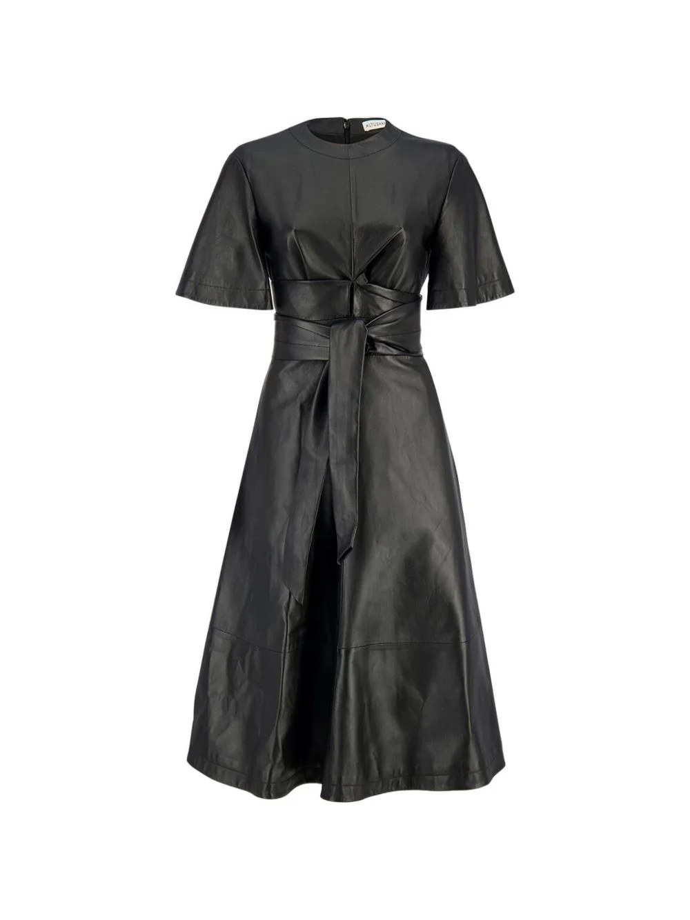 Kirsty gathered leather midi dress Highlights - Black - Short sleeves - Below-the-knee - Tie waist - A-line skirt - Round neck Imported Composition Lamb Skin 100% Washing instructions Read Manufacturer Guidelines
