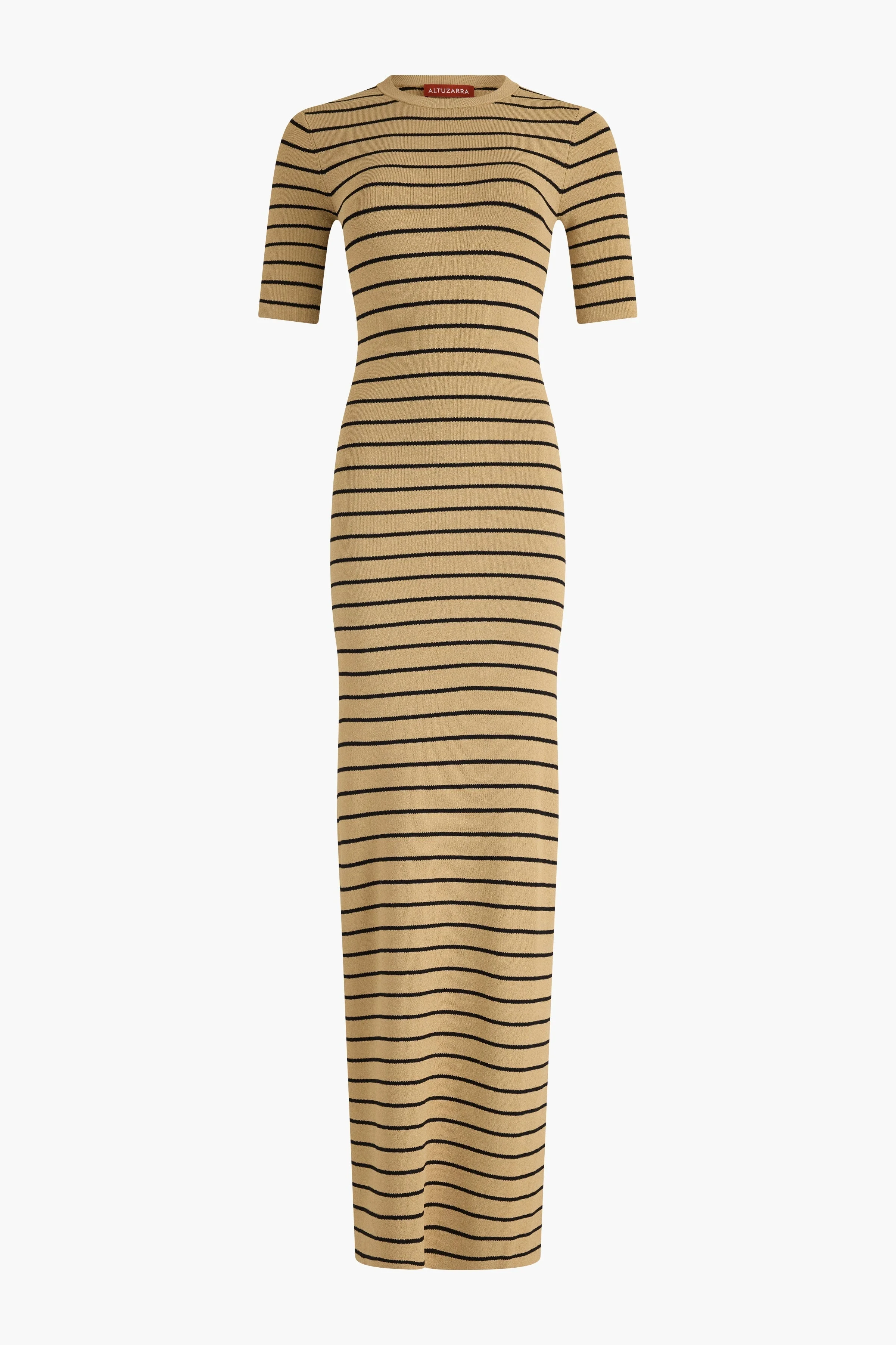 The Kitty dress maxi dress is fitted with horizontal stripes. It's knitted for a figure-hugging fit with short slim sleeves. Details -96% Rayon 4% Elite -Imported