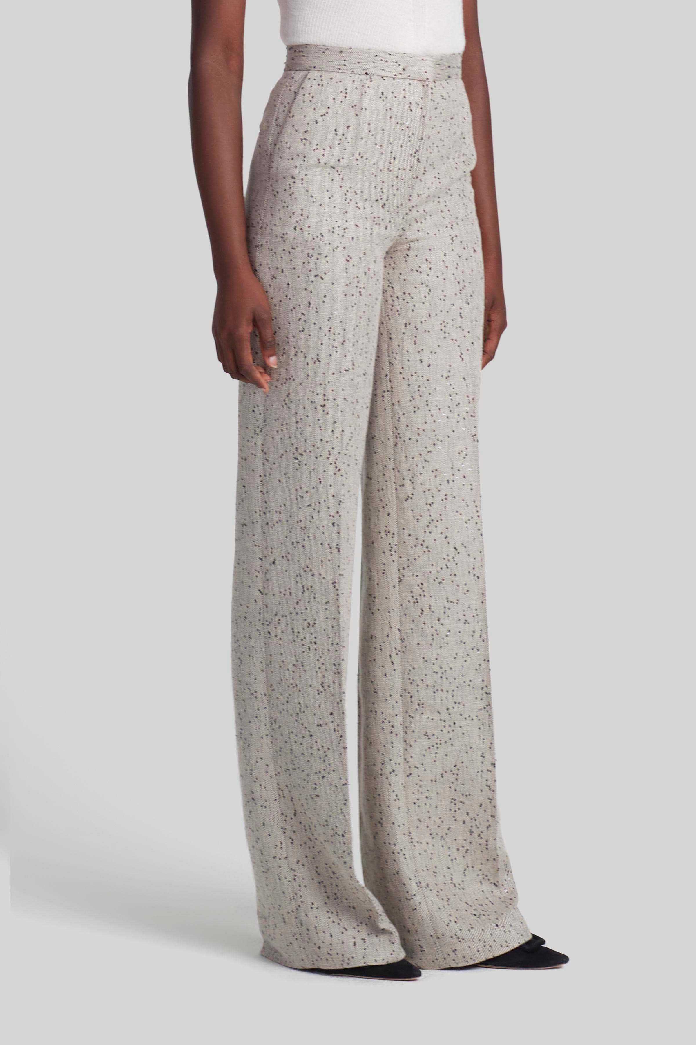 The ‘Laski’ trousers offer a unique alternative to traditional tailored styles. They’re Italian-made from speckled fabric to a wide leg silhouette and pair perfectly with the matching blazer taking you from the boardroom to the bar. Details - Mid-rise waist - Zip and hook front closure - Jet front pockets - 55% Acetate, 45% Polyester - Made in Italy - Model is 5'10" and is wearing a size 36