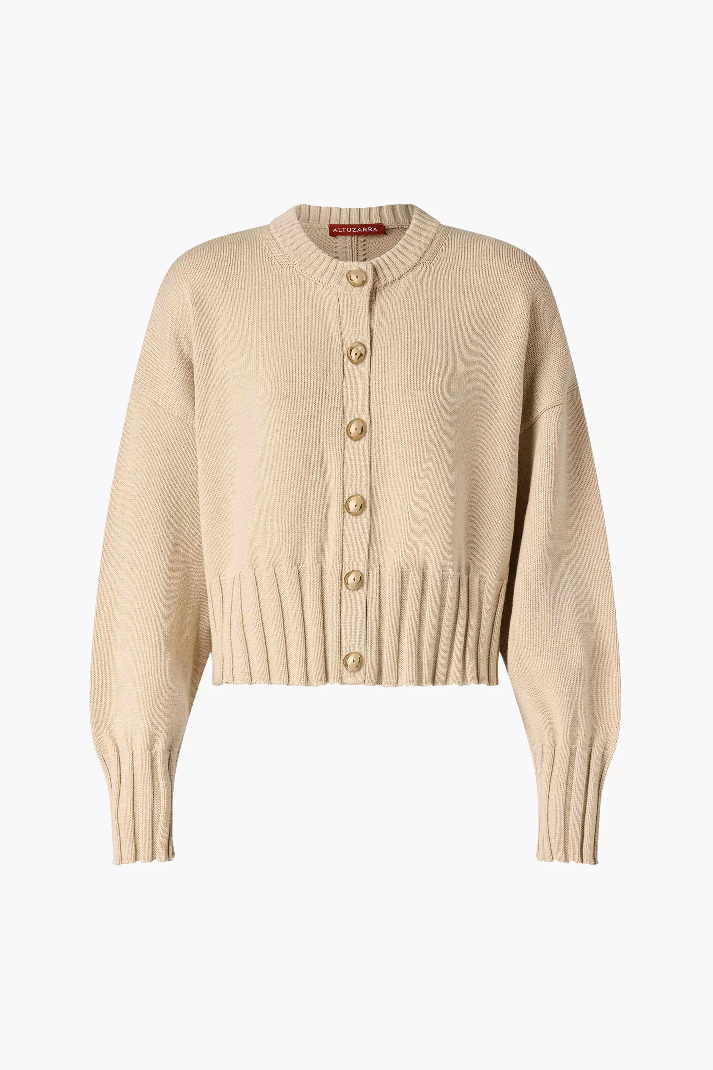 The Liam sweater is an elevated take on the classic cardigan. It's knitted from a warming blend of cotton and silk for a loose shape with dropped shoulders. Note the oversized box pleated trims and bold sculptural buttons. Details '- 50% Cotton, 22% Silk, 28% Polyamide