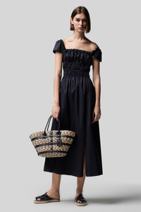 The ‘Lily’ dress is cut from a soft cotton blend to a flattering smocked construction. Designed with hidden pockets and a side slit, this off-the-shoulder silhouette is both elegant and whimsical. Details - Ruched bodice - Off-the-shoulder neckline - Midi length - Side slit - 100 % Cotton - Made in Italy - Model is 5'10" and is wearing a size 36