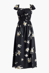 The Lily dress is cut from a soft cotton blend to a flattering smocked construction. Designed with hidden pockets and a side slit, this off-the-shoulder silhouette is both elegant and whimsical. Details 97% Cotton, 3% Spandex. Made in Italy