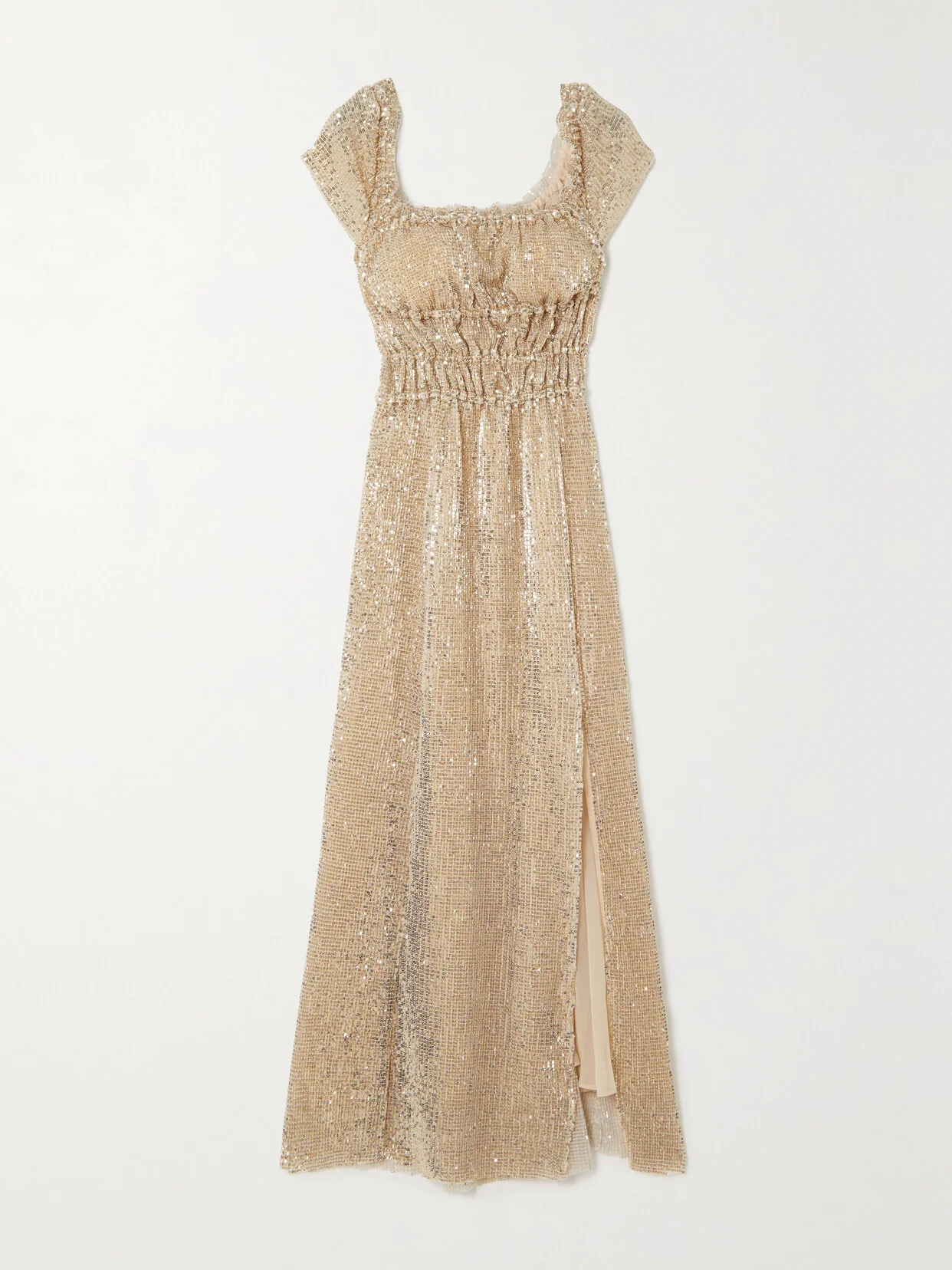 Lily Shirred Sequined Stretch-silk Midi Dress