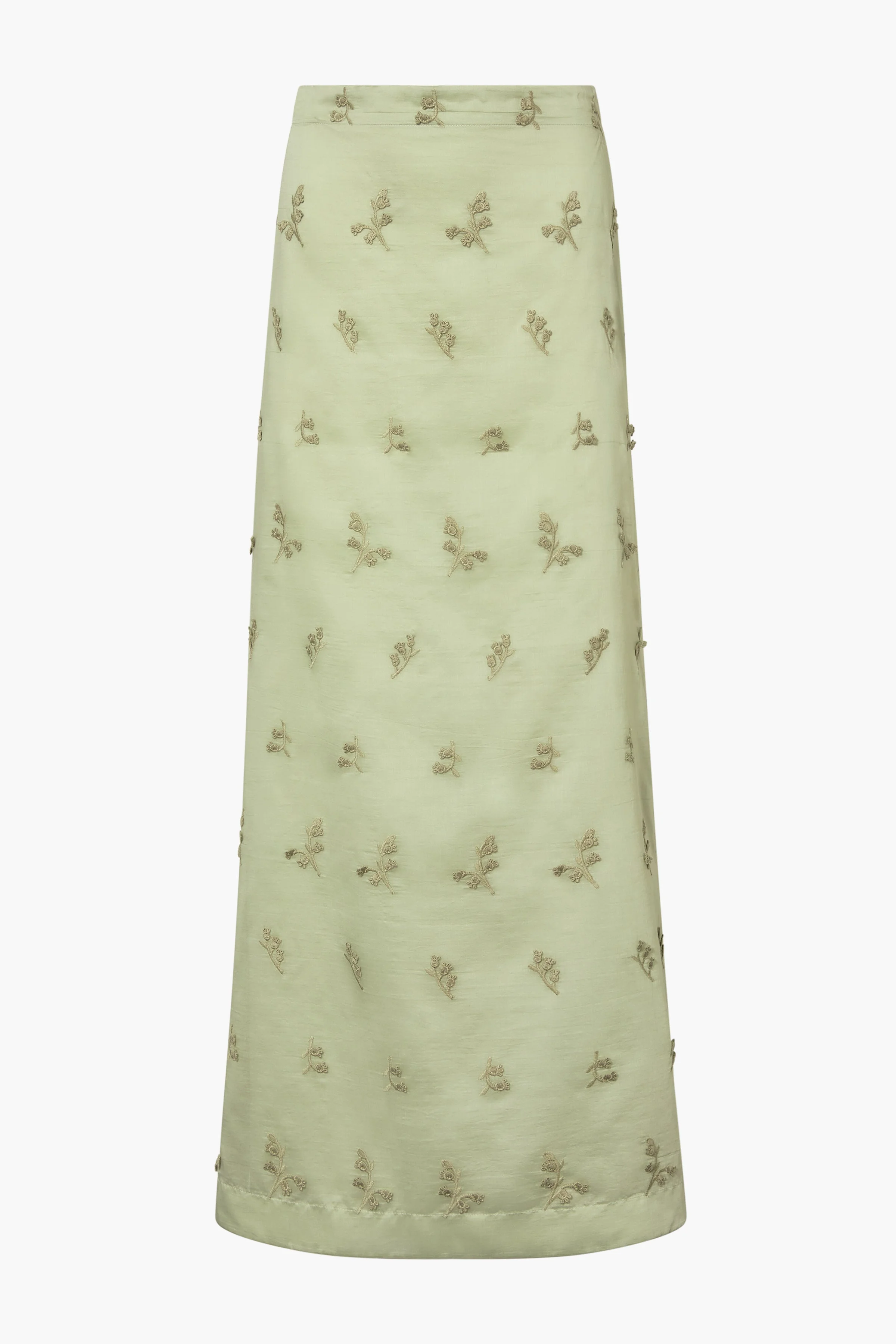 The Linnie Skirt is designed with a clean, straight silhouette and a fitted waist. It falls to a long hem with a fluid drape through the body. Details 100% Polyester Made in Italy