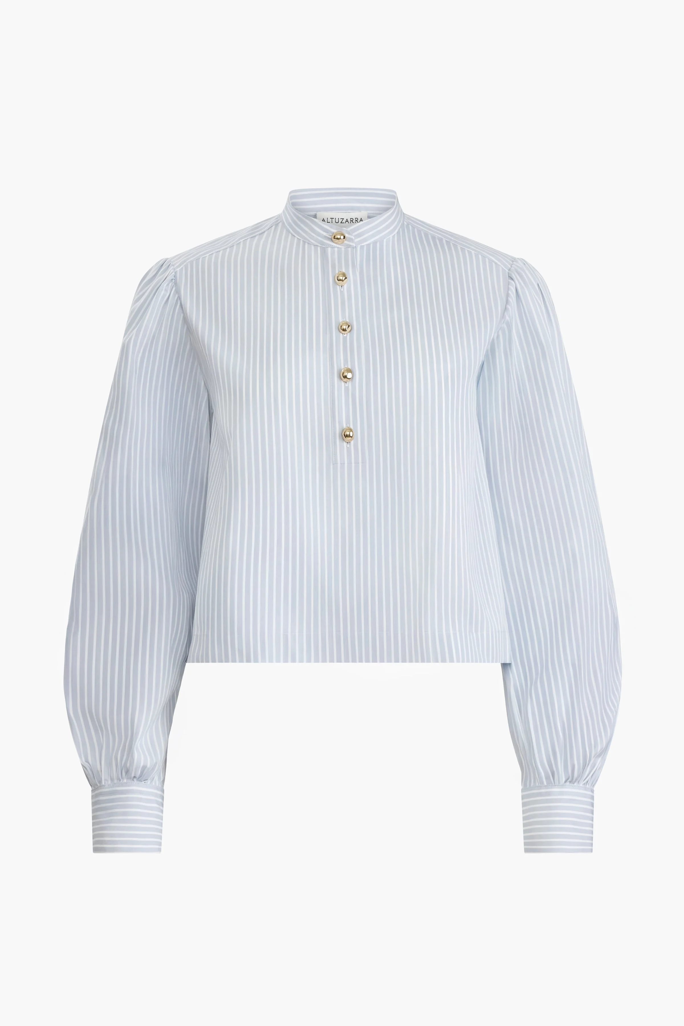 The Margot top is a modern take on the classic shirt silhouette. Cut in Italy from cotton-poplin, it features a rounded collar with gold hammered buttons and subtle balloon sleeves. Details '-100% Cotton -Made in Italy