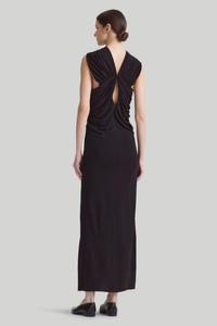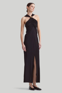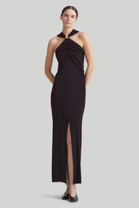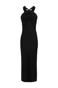 The 'Marlene' is a sophisticated column dress adorned with graceful pleating and finished with a gold-tone neckline gather. Details Concealed zip fastening along back 100% Viscose Dry clean Made in France