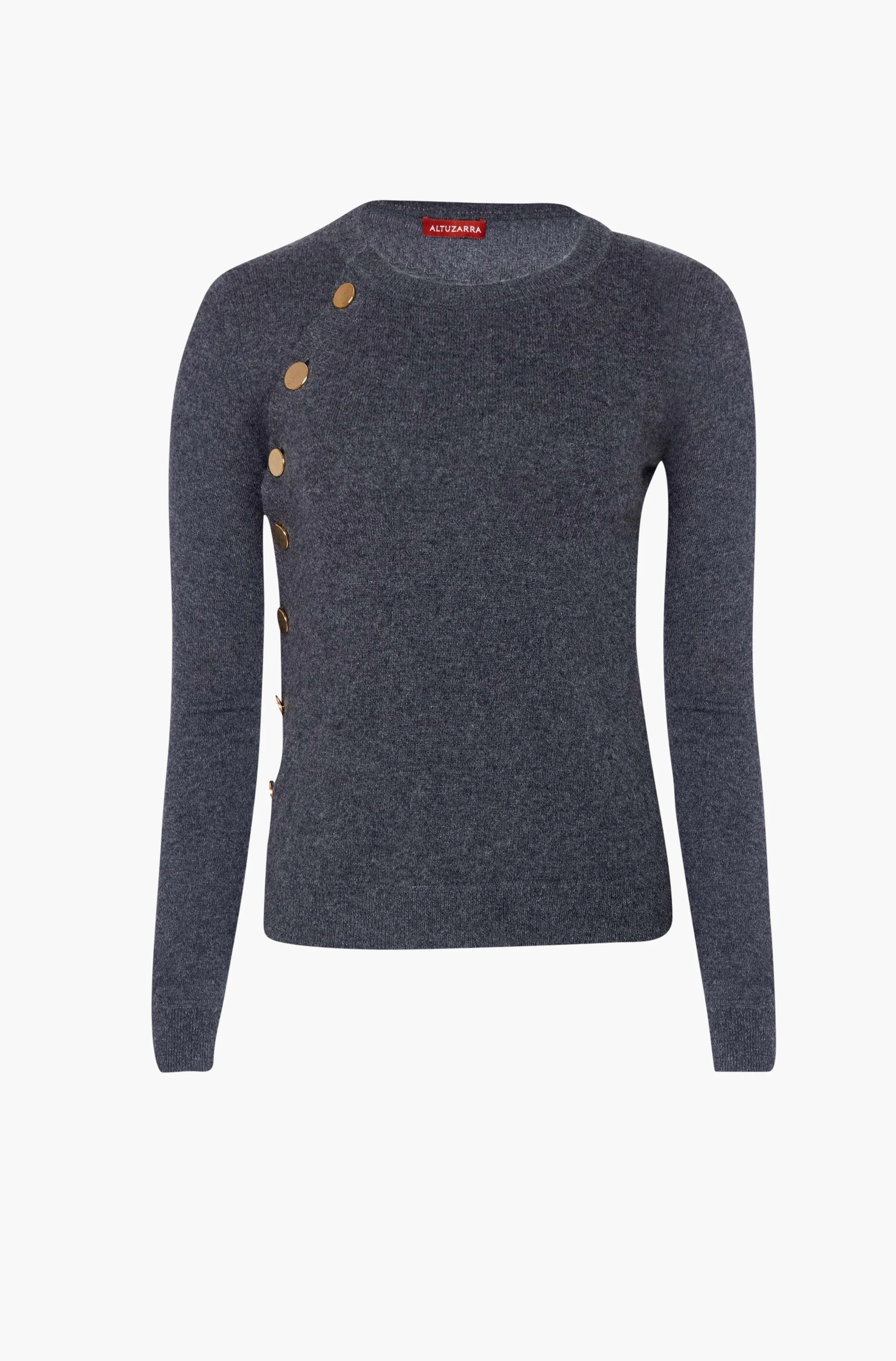 The Minamoto Knit Top is a signature Altuzarra style crafted from pure cashmere to a slim fit with an asymmetrical line of gold-tone metal buttons at one side. It has a round neckline, long sleeves and ribbed trims. Details Round neckline Button side closure Long sleeves Ribbed trims 100% Cashmere Model is 5'11" and is wearing a size XS