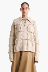 The Mitch sweater is fresh of the FW25 runway where Altuzarra continues to explore the idea of a modern wardrobe. It's knitted from luxurious merino wool with an oversized buttoned collar and novelty bobbles. Details 100% Merino Wool. Made in Italy
