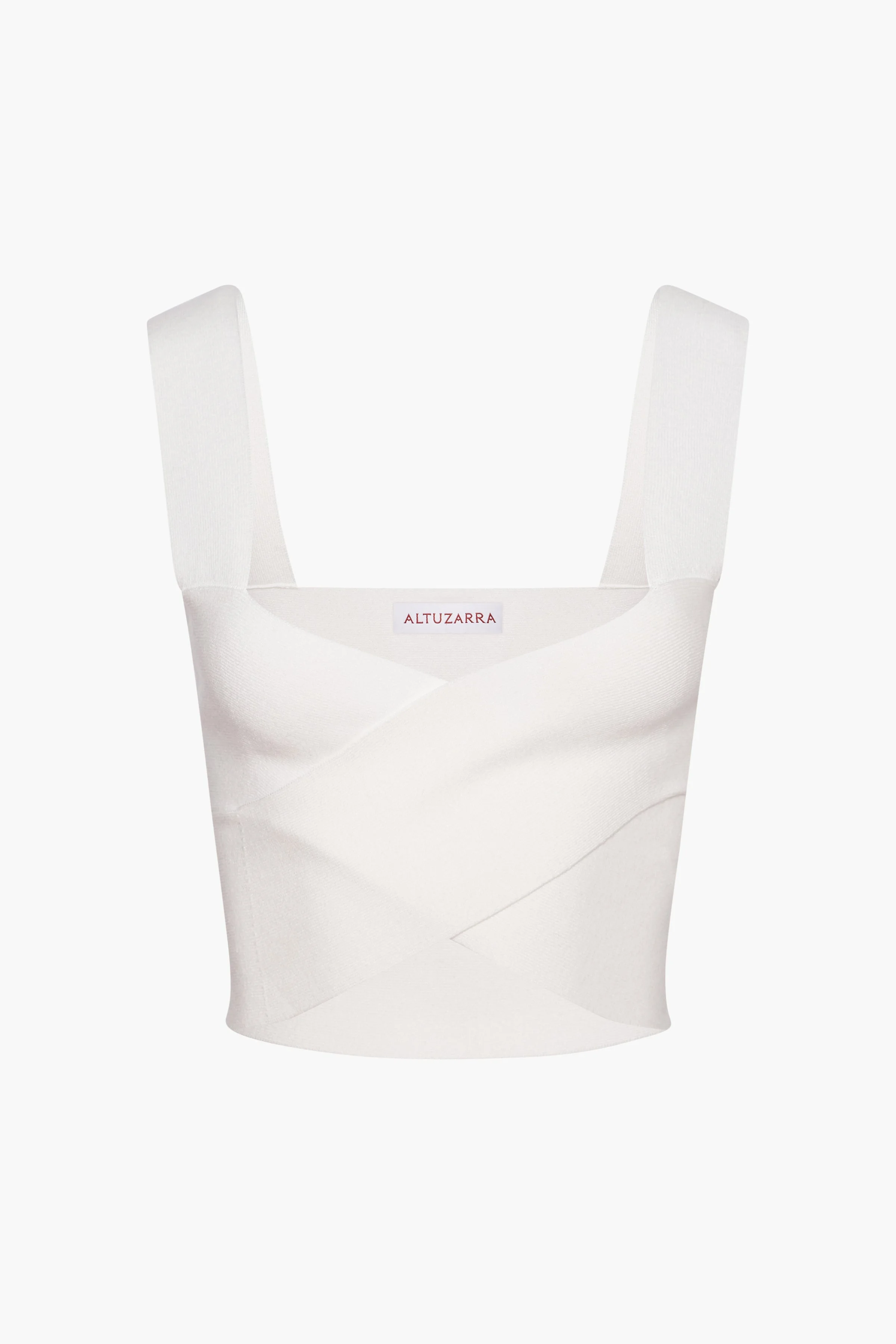 The Mylas top is tailored from soft stretch-knit to a figure-skimming cropped silhouette. The plunging, crossed front is balanced by wide shoulder straps. Details Wide shoulder straps Sweetheart neckline Crossed center font 72% Eco-Responsible Viscose, 28% Polyester Model is 5'10" and is wearing a size XS