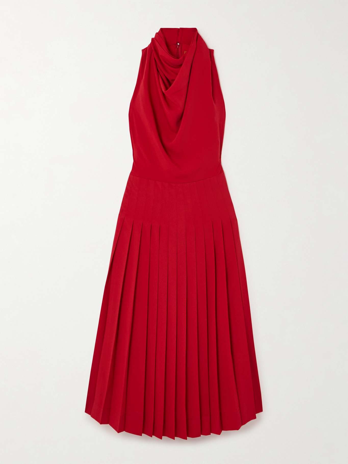 EDITORS'NOTES A vision of sophistication, Altuzarra's 'Nathalie' dress is framed with a chic, draped cowl neckline. It's made from cady for a slim fit and fluidly falls to a knife-pleated skirt. Wear yours with ballet flats and drop earrings. SIZE & FIT Model measurements: - Fits true to size, however those who are between sizes should take the smaller size - Designed for a slim fit - Mid-weight, non-stretchy fabric - Model is 175cm/ 5'9" and is wearing a FR 36 - Bust: 78cm/ 31" - Waist: 62cm/ 24.5" - Hip: 92cm/ 36" DETAILS & CARE - Red cady - Buttons and concealed zip fastening at back - 100% polyester